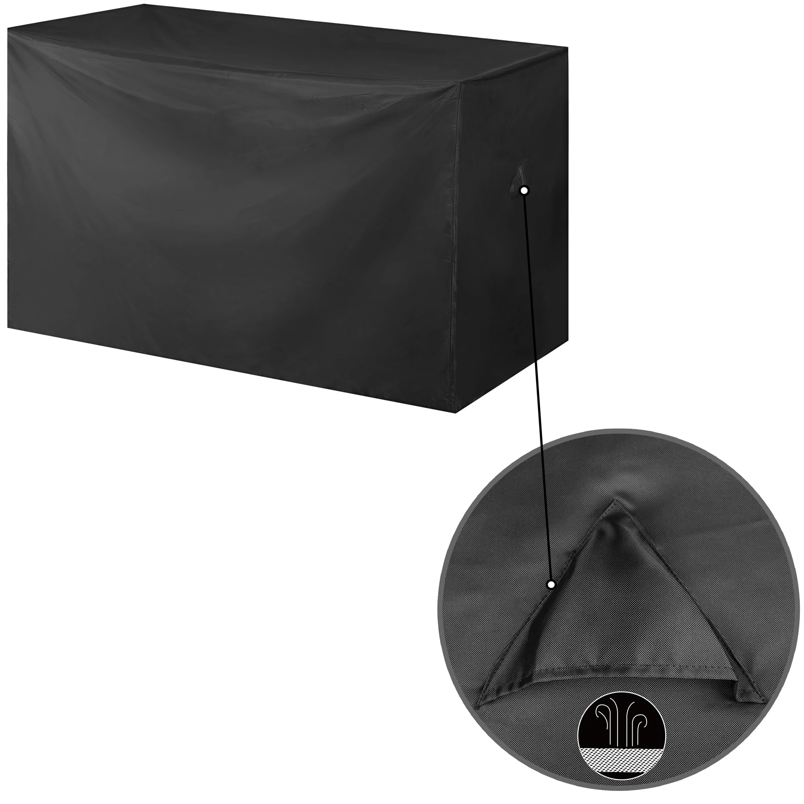 Die UV-beständige Abdeckung besteht aus dichtem Polyester (200 g/m²). Für das Hochleistungs-Oxford-Gewebe wurde eine hohe Garnfeinheit von 420D gewählt, was die Reißfestigkeit erhöht. Schimmelbildung wird durch die beiden Belüftungsfenster verhindert, so kann kein modriger Geruch entstehen, da Feuchtigkeit entweicht und Ihre Möbel bleiben in einem top Zustand.