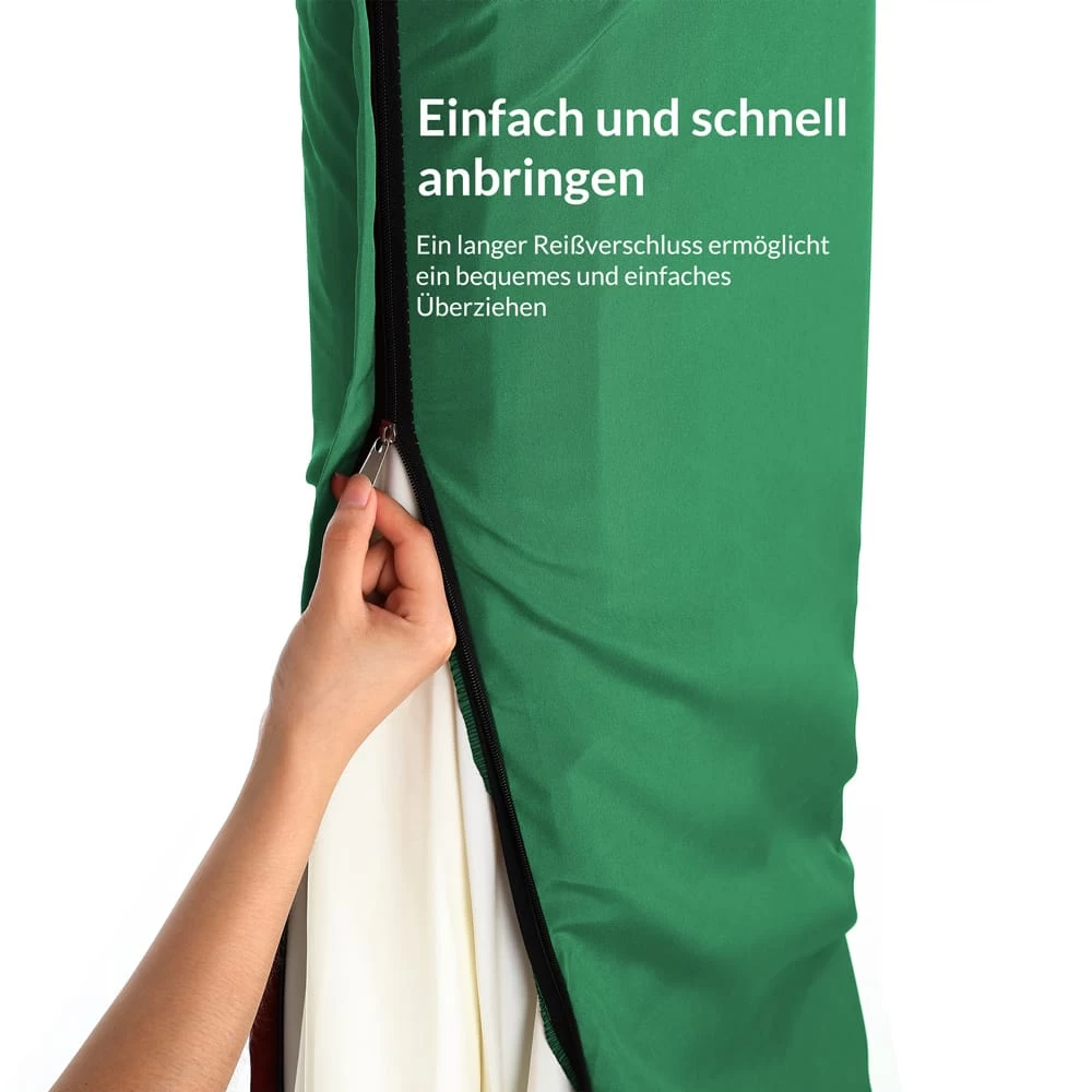 Die Schutzhülle mit Reißverschluss aus 160 g/m² Polyester bewahrt Ihren Sonnenschirm vor Feuchtigkeit, Schmutz, Frost und Staub.