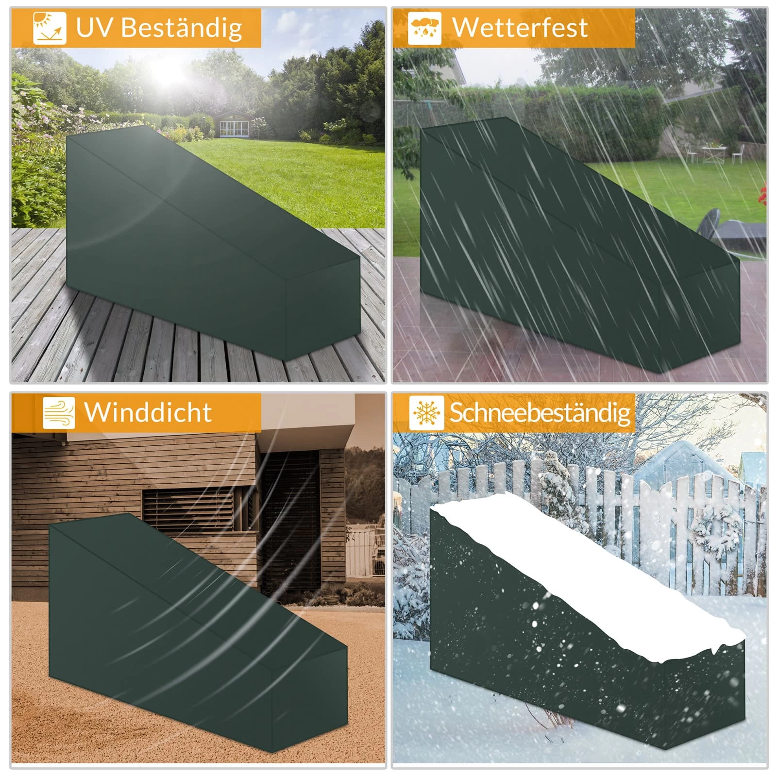 Dadurch sind Ihre Gartenmöbel bestens vor Regen, Staub, Dreck, Rost, Schnee und Grünalgen geschützt.