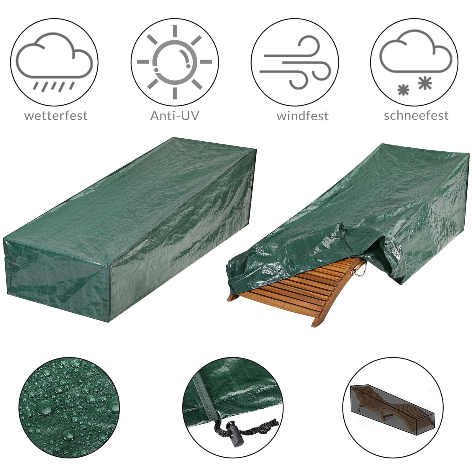 Ob Lounger, Stuhl, Bank oder andere Gartenmöbel – mit der Abdeckung sind Ihre Möbel immer vor schlechtem Wetter geschützt.