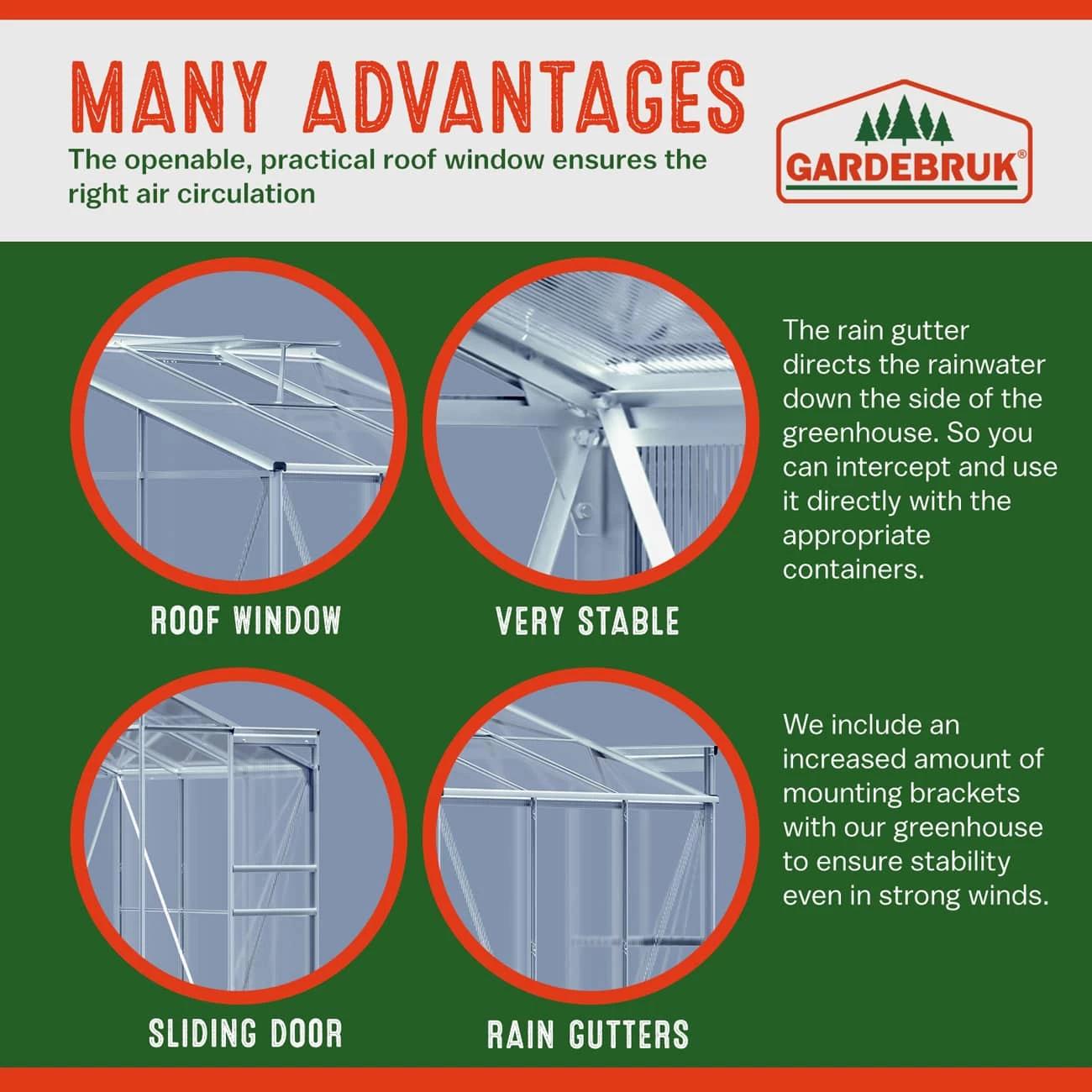 ALU Beistell-Gewächshaus mit Fenster, Regenrinne, Schiebetür und Fundament