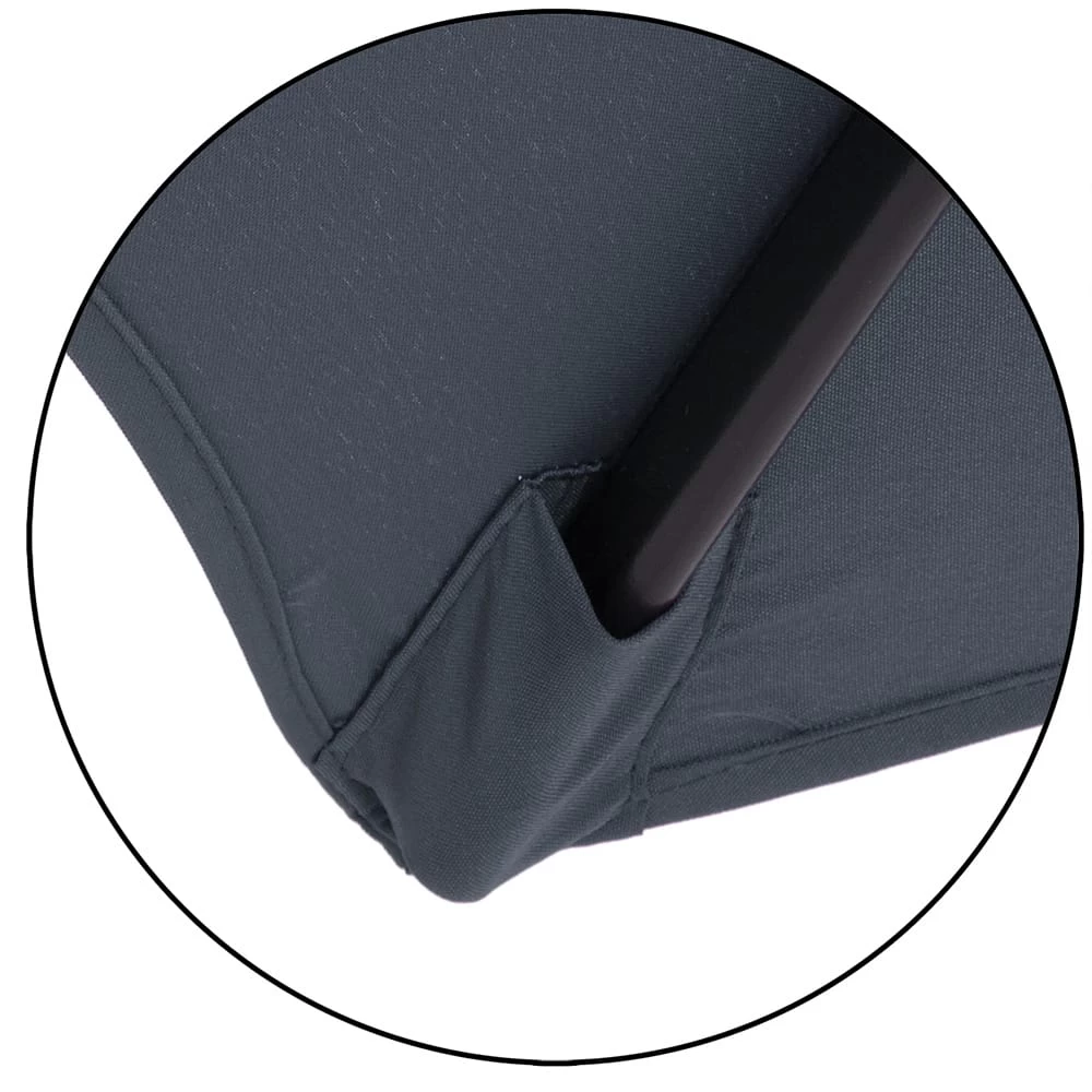 Durch die Windöffnung an der Oberseite des Sonnenschutzes ist eine noch höhere Standfestigkeit gewährleistet, da aufkommende Luft nach oben entweichen kann. So steht der Kurbelschirm auch bei schlechterem Wetter stehts stabil und sicher.