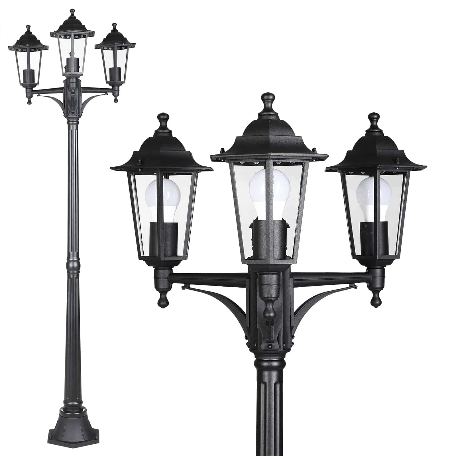 Die Außenlaternen aus Aluminium-Druckguss sind spritzwassergeschützt (IP44) und wetterbeständig und so perfekt für den In-/und Outdoorbetrieb geeignet.