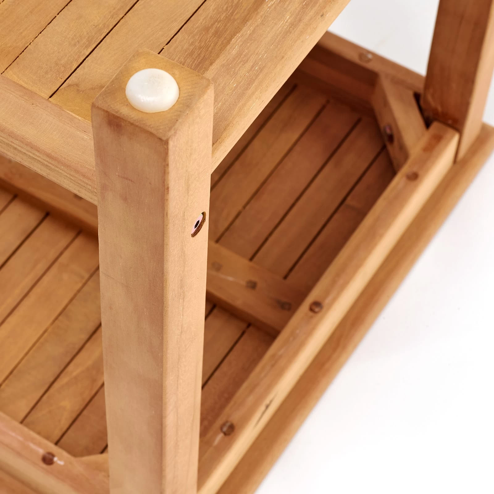 Vielseitig einsetzbar: Im Innen- oder Außenbereich, der Massivholztisch ist ein echter Allrounder. Ob als Beistelltisch im Garten, Balkontisch, Blumenhocker oder auch als Couchtisch im Wohnzimmer. Dieser hochwertige Massivholztisch aus Teak ist die perfekte Wahl.