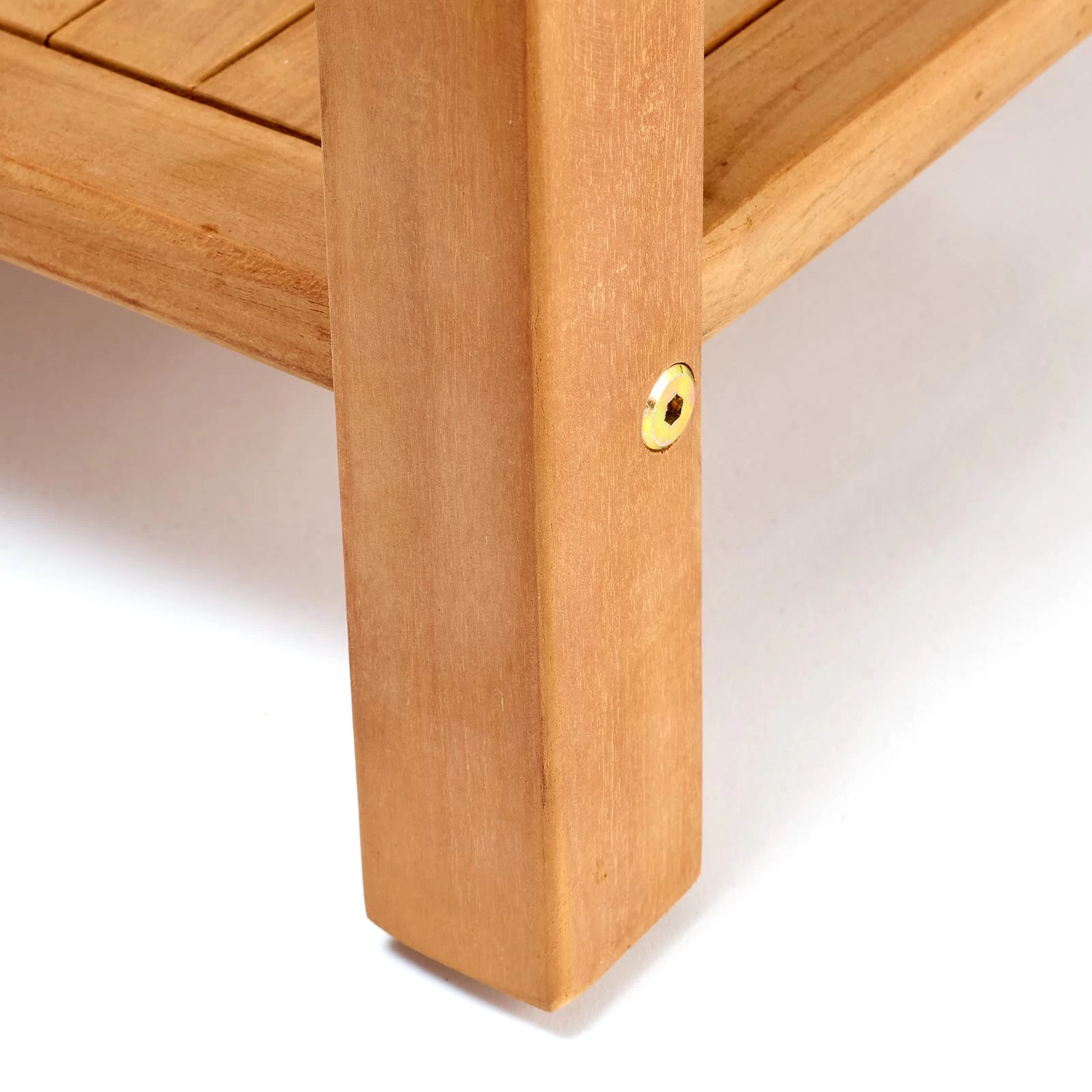 Massivholz: Gefertigt aus massivem, robustem Teakholz ist der quadratische Gartentisch besonders stabil, robust und witterungsbeständig. Das Teakholz ist SVLK zertifiziert und eignet sich hervorragend für den Außenbereich. Teak ist ein sehr öl- und harzhaltiges Material und somit sehr resistent gegenüber Schädlingen und Pilzen.