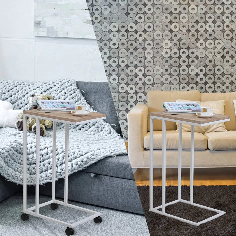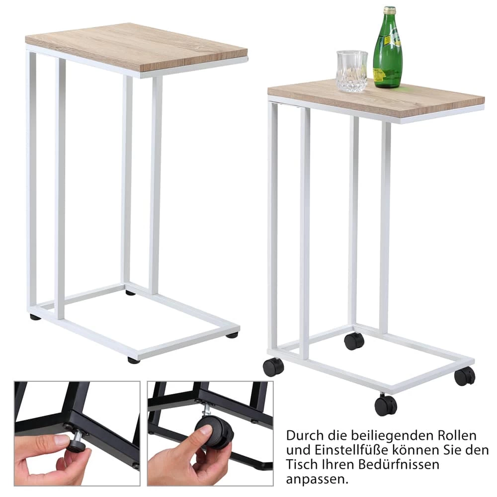 Funktionaler und moderner Beistelltisch mit Rollen in Holzoptik!