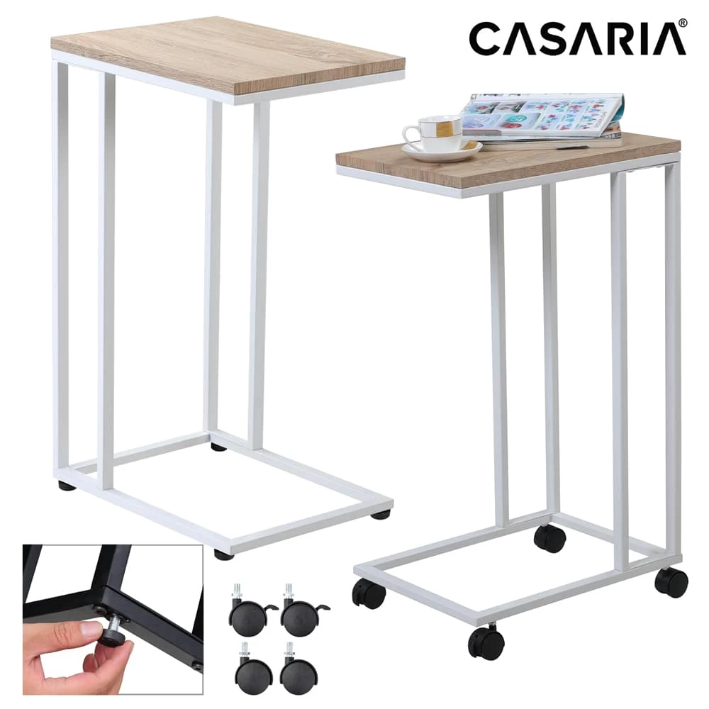 Der Beistelltisch verfügt über 4 abnehmbare Standfüße. Die Füße können im Handumdrehen zu vier leichtgängigen Rollen gewechselt werden. Der Tisch lässt sich so kinderleicht verschieben. Um ein Verrutschen am Bett oder der Couch zu verhindern haben 2 der 4 Rollen Bremsen.
