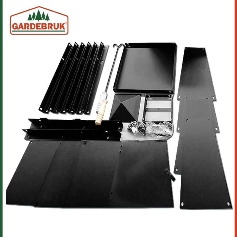 – schneller Aufbau – stabile Metallkonstruktion, 5 kg schwer – verschließbare Tür zum Befüllen mit Holz oder Kohle – stabiler Stand mit genügend Bodenabstand – mit Rauchabzugsöffnung für optimalen Zug – Schürhaken mit Holzgriff