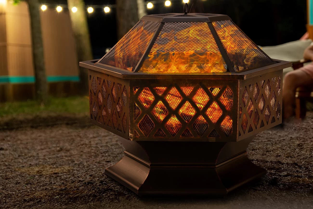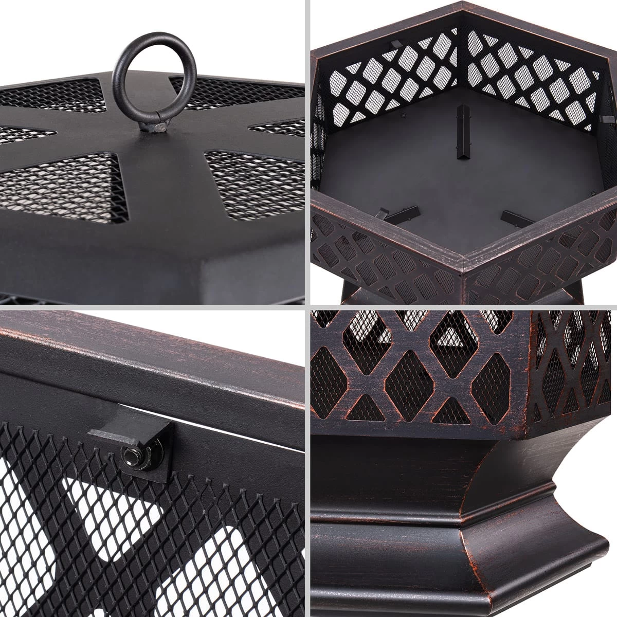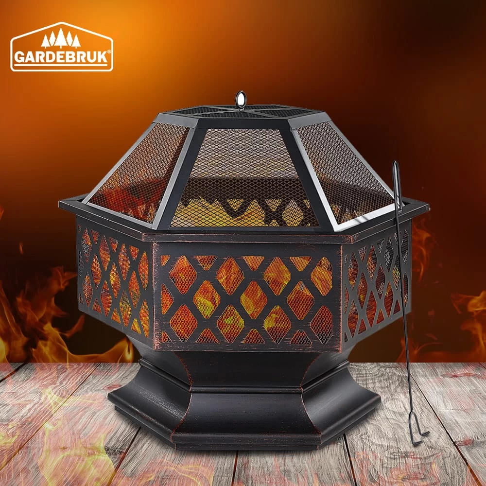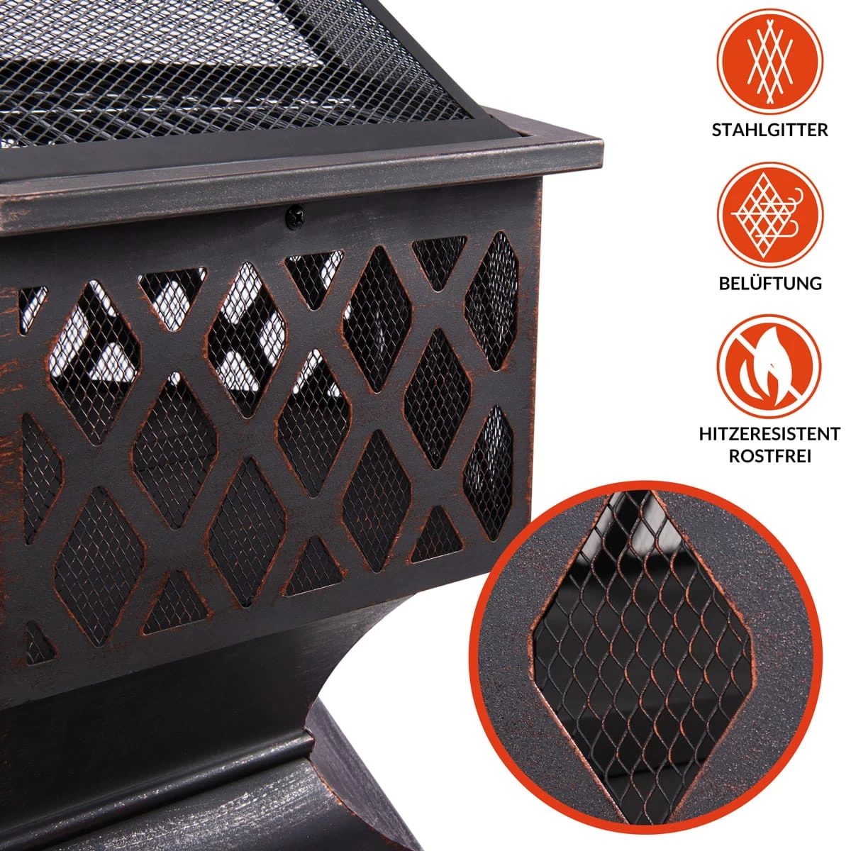 Mit dem mitgelieferten Funkengitter können Sie in Ruhe das Feuer genießen. Besonders praktisch ist zudem der mitgelieferte Feuerhaken und die Abdeckung, mit der Sie Ihre Feuerschale bei Nichtbenutzung schützen können.