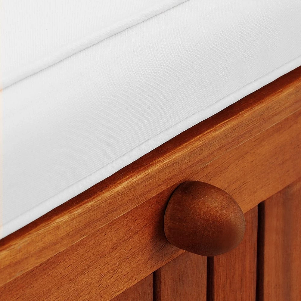 Das Besondere an dieser Bank ist die integrierte Truhe unterhalb der Sitzfläche. Hier kannst du allerlei Dinge verstauen, wie z.B. Wechsel-Sitzauflagen oder Kissen.