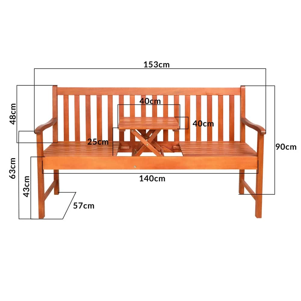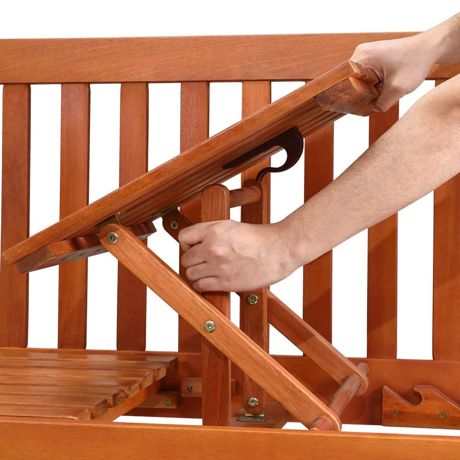Das Holz ist geölt und hat eine kräftige durchgehende Farbgebung. Das besondere Highlight ist der hochklappbare Tisch zur Ablage von Speisen, Getränke, Bücher, Kerzen und sonstige Accessoires.