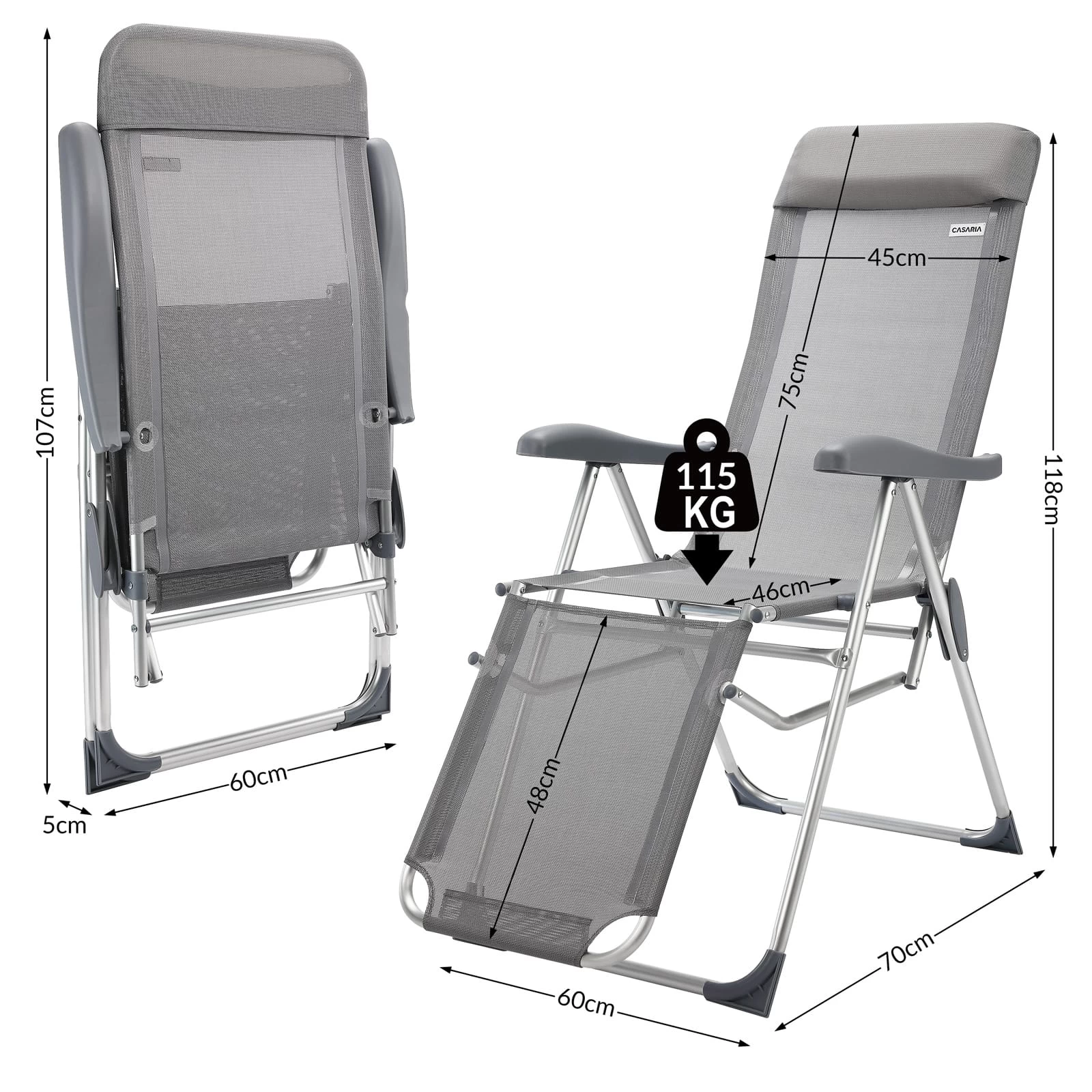Die Hochlehner sind 5-fach verstellbar und bestehen aus einem hochwertigen Aluminiumrahmen. Der Kopfbereich ist mit einem bequemen Polster ausgestattet.