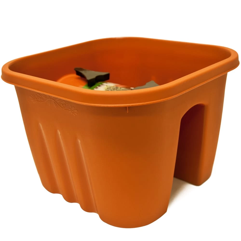 Der moderne Geländerkasten wird einfach über das Geländer gehängt und blitzschnell mit zwei Klammern befestigt. Es wird kein Werkzeug benötigt. Der Geländerkasten eigenet sich ideal für Balkon, Terrasse und Garten. Dank der robusten und hochwertigen Verarbeitung können Regen, Frost und Sonnenlicht dem Blumenkasten nichts anhaben und Sie haben lange Freude daran.