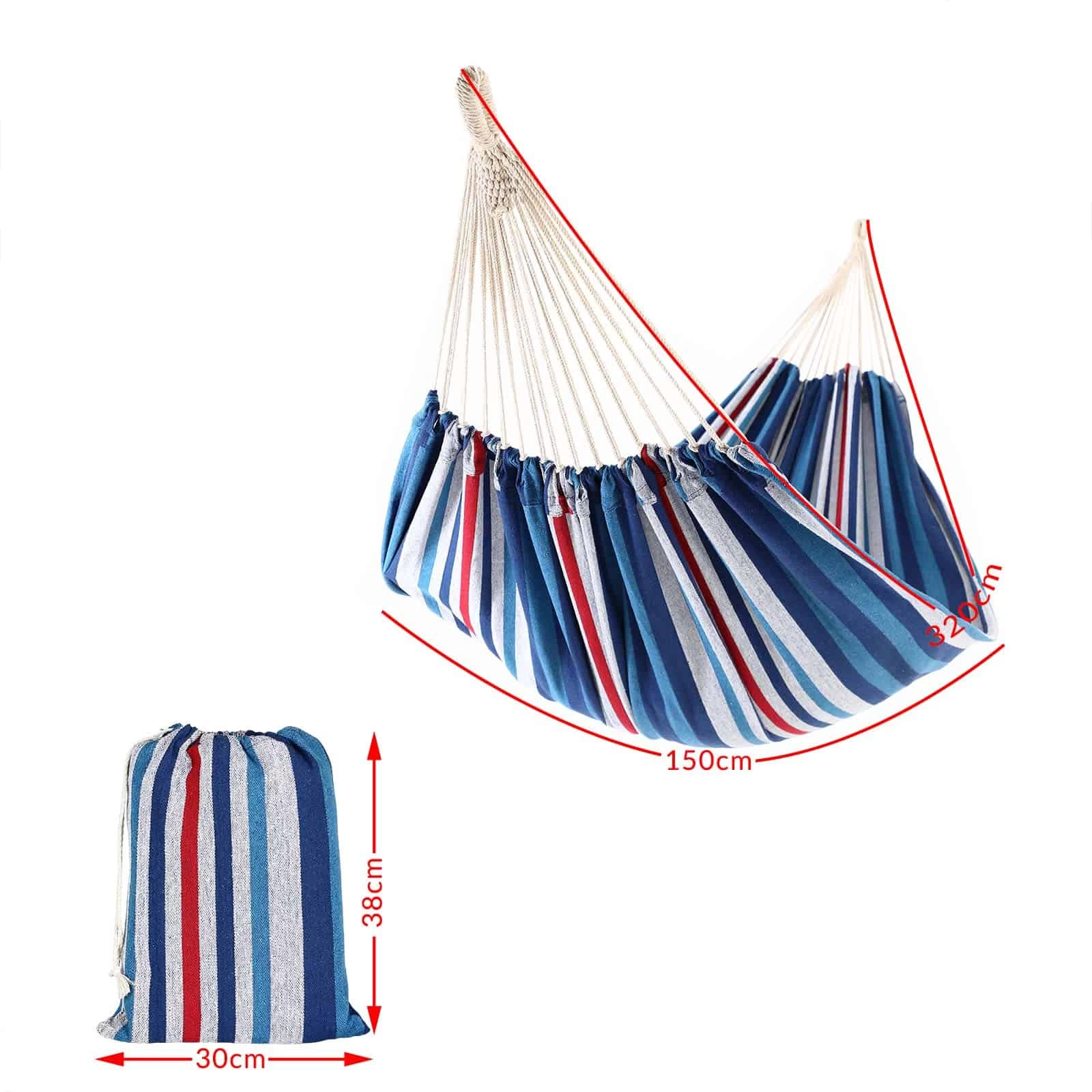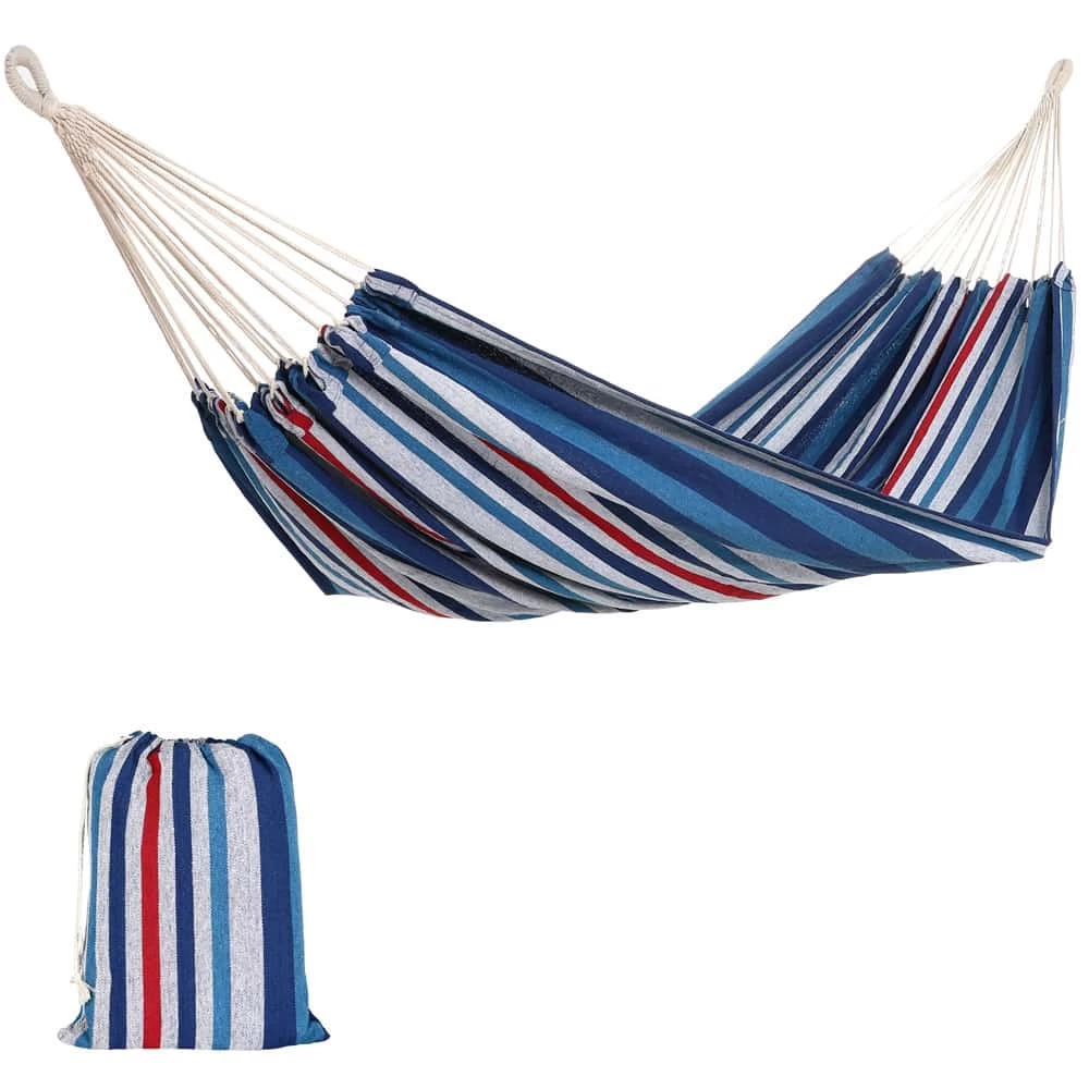 Die Hängematte der Marke Detex® kann mit bis zu 300 kg belastet werden. Mit 150 cm ist sie breit genug für 2 Personen. Sie lässt sich dank der Aufhängung einfach auf- und abbauen und überall hin mitnehmen.