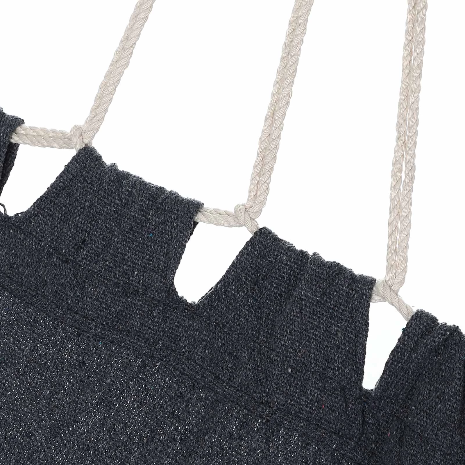 Die Hängematte besteht aus atmungsaktivem 320g/m² Baumwoll-Polyester-Gemisch, der anschmiegsame Stoff ist hautfreundlich, wetterfest und wasserabweisend. Die Seile sind durch die gedrehten Zöpfe an den Enden sehr robust.