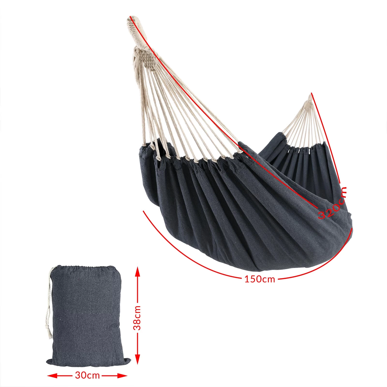 Die Hängematte der Marke Detex® kann mit bis zu 300 kg belastet werden. Mit 150 cm ist sie breit genug für 2 Personen. Sie lässt sich dank der Aufhängung einfach auf- und abbauen und überall hin mitnehmen.