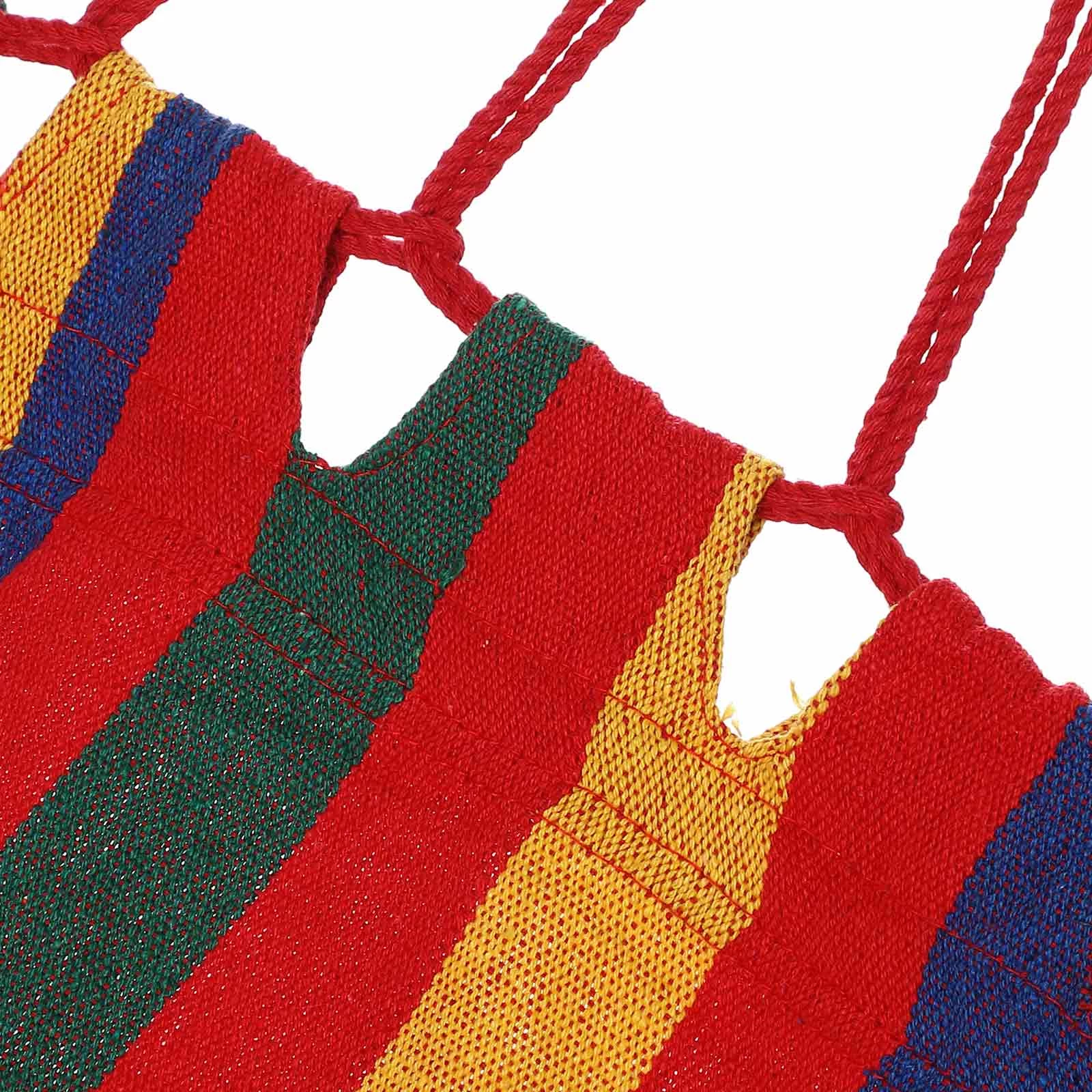 Der Hängesessel der Marke Detex® kann mit bis zu 150kg belastet werden. Er lässt sich dank der Aufhängung einfach auf- und abbauen und überall hin mitnehmen. Er ist für drinnen und draußen geeignet und bietet sich somit als moderner Sessel im Haus oder bequeme Schaukel im Garten an.