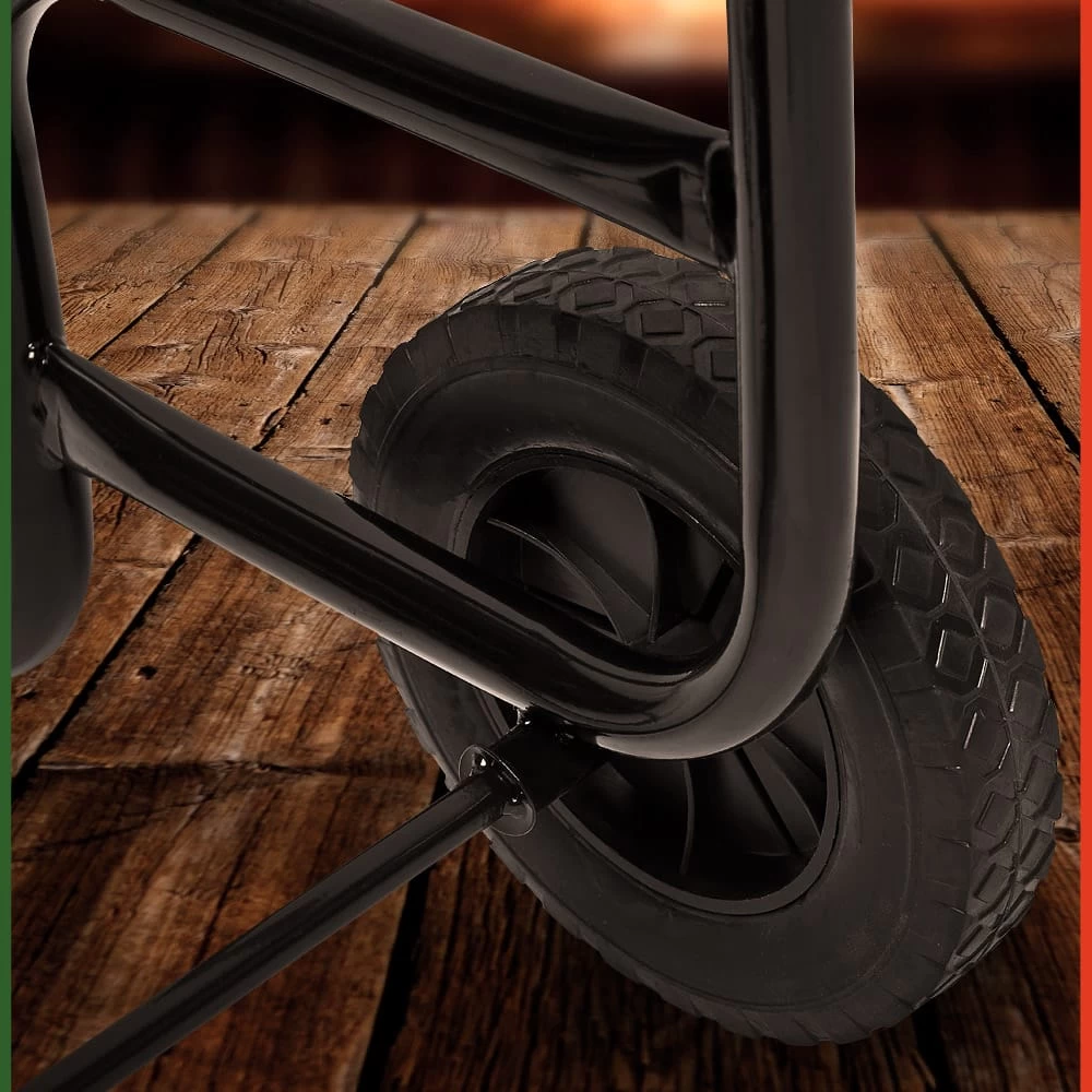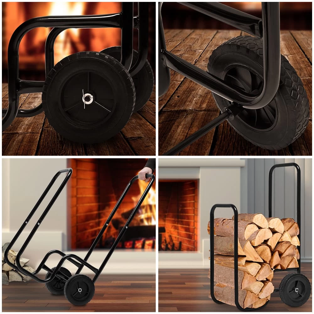 Mit diesem praktischen Holzwagen sorgen Sie bequem für Nachschub an Kaminholz. Dank der Gummibereifung lässt er sich leicht und sicher steuern.