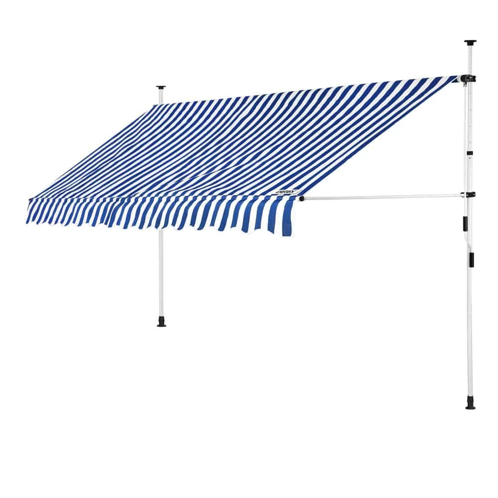 Die höhenverstellbare Klemmmarkise der Marke Detex® besteht aus hochwertigem Polyester mit PU-Beschichtung. Sie ist wasser- und schmutzabweisend sowie UV- und witterungsbeständig.
