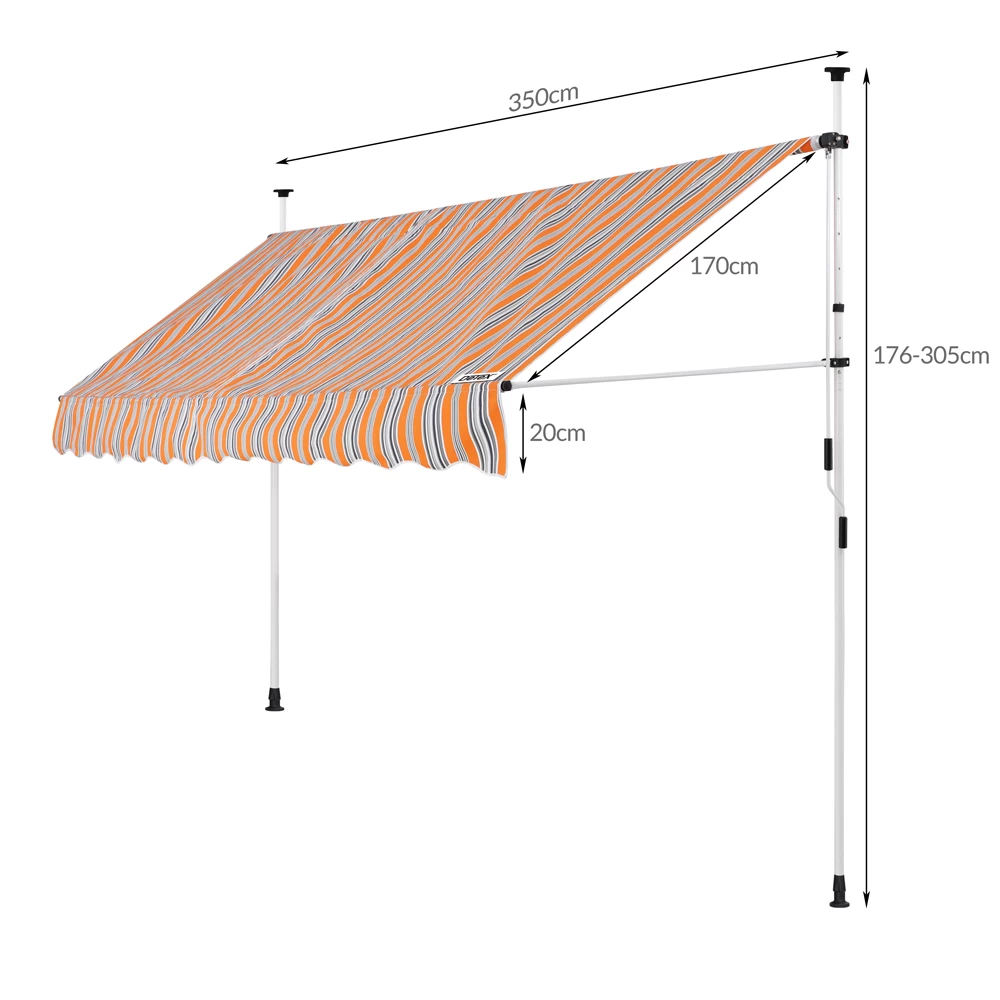 Die höhenverstellbare Klemmmarkise der Marke Detex® besteht aus hochwertigem Polyester mit PU-Beschichtung. Sie ist wasser- und schmutzabweisend sowie UV- und witterungsbeständig.