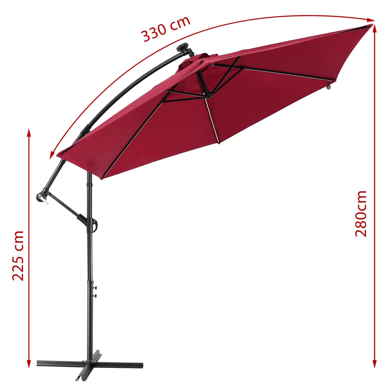 Am Abend erstrahlen die LED Streifen im Inneren des Gartenschirmes und zaubern ein tolles Ambiente. Erholen Sie sich von einem anstrengenden Tag oder lassen Sie einfach den Tag gemütlich ausklingen beim Grillen mit Freunden und der Familie.