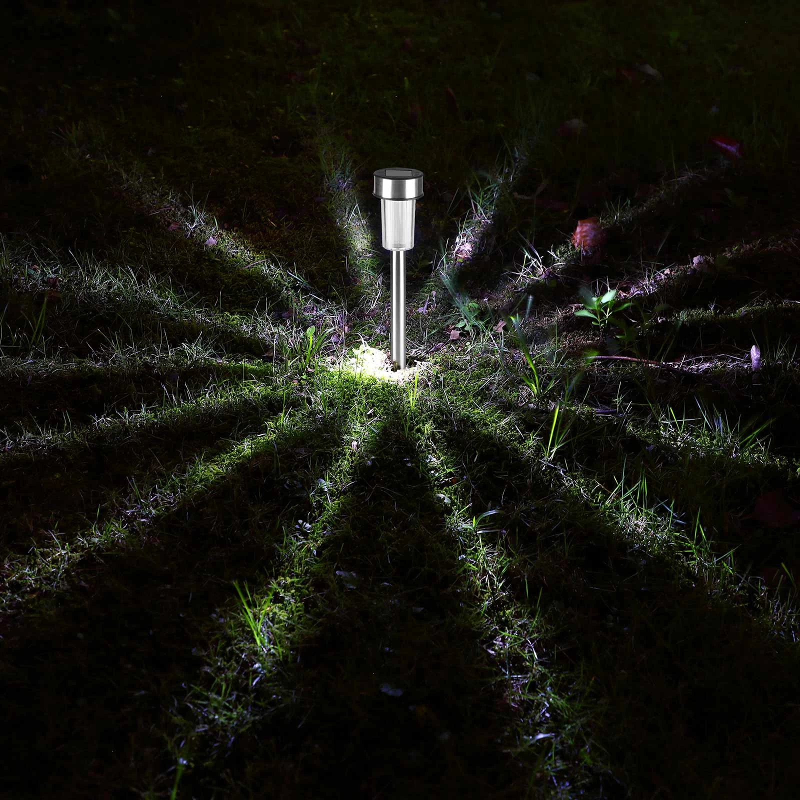 Das angenehm weiße LED Licht sorgt für eine stimmungsvolle Atmosphäre in Ihrem Garten. Durch den Erdspieß können Sie die Solarlampe kinderleicht in den Boden stecken und Akzente in Ihrem Garten, Terrasse oder Balkon setzen.