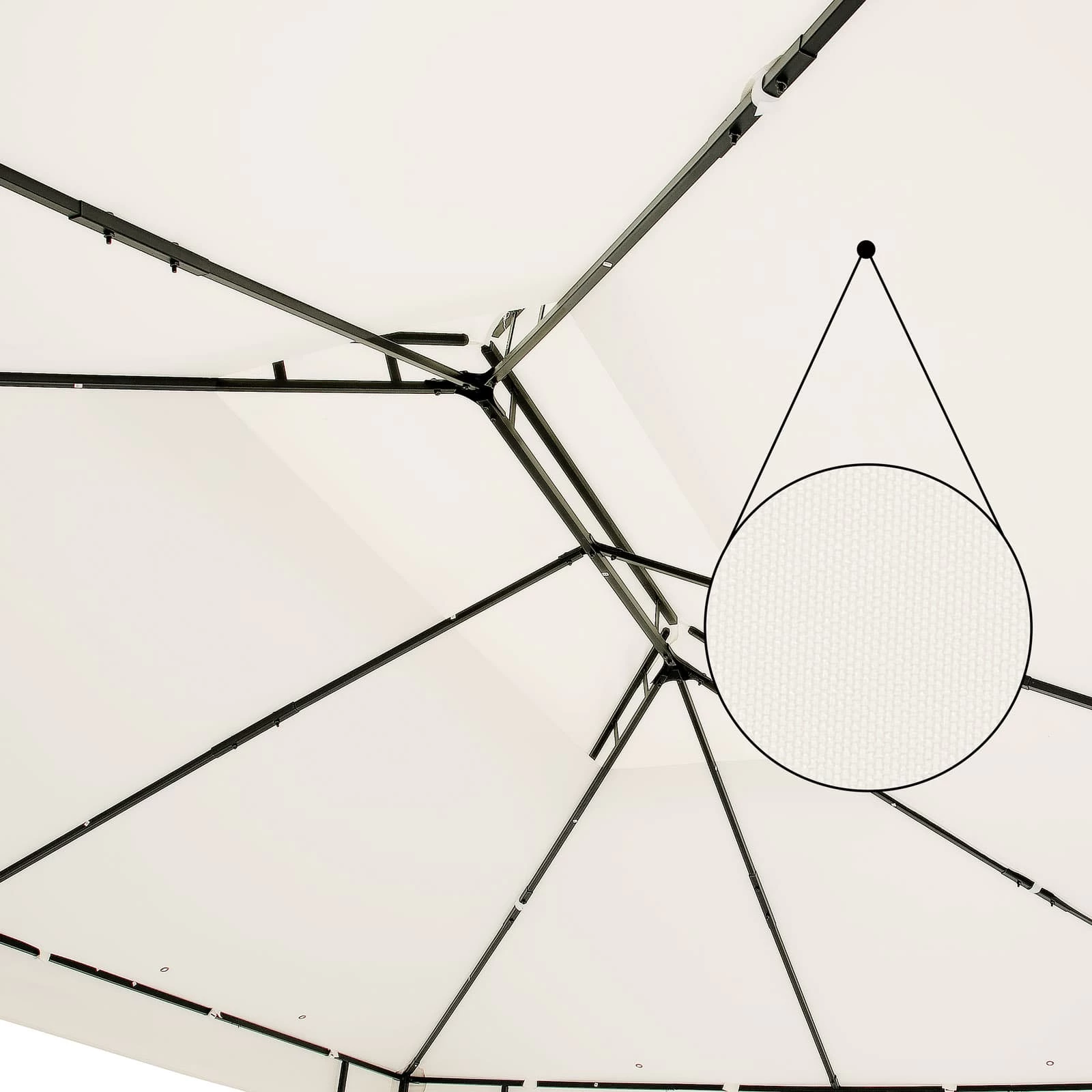 Der Gartenpavillon ist mit stabilen Dachstreben und verkleideten Standfüßen ausgestattet. Die Pulverbeschichtung der Metallkonstruktion bietet Schutz vor Korrosion, Sie lange Freude an Ihrem Gartenzelt haben.