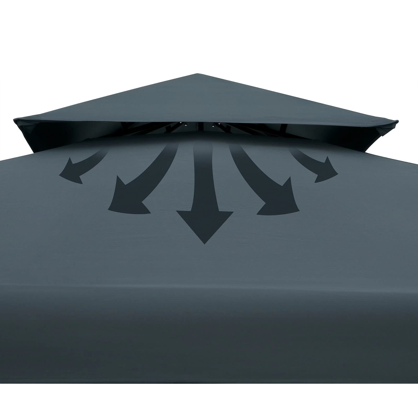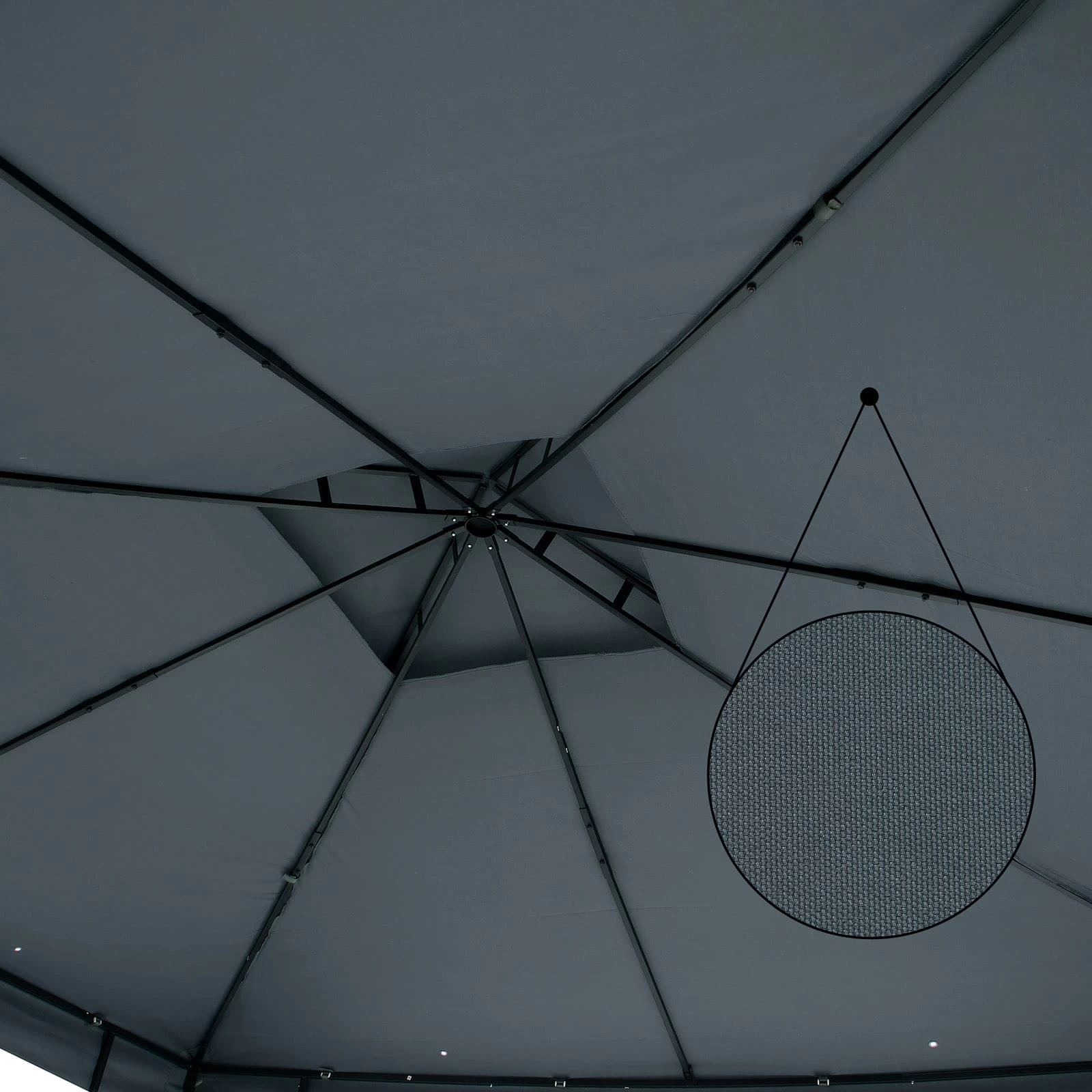 Der Gartenpavillon ist mit stabilen Dachstreben und verkleideten Standfüßen ausgestattet. Die Pulverbeschichtung der Metallkonstruktion bietet Schutz vor Korrosion, damit Sie lange Freude an Ihrem Gartenzelt haben.
