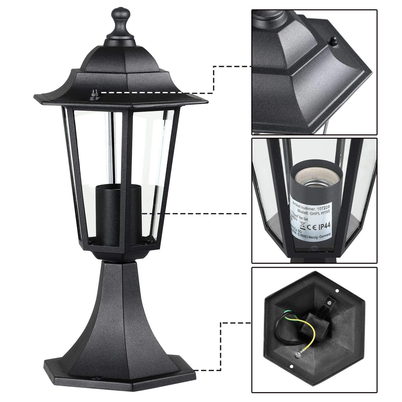 Die 6 Außenleuchten aus Aluminium-Druckguss sind spritzwassergeschützt (IP44) und wetterbeständig und so perfekt für den In-/und Outdoorbetrieb geeignet.
