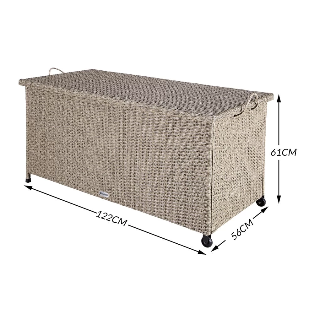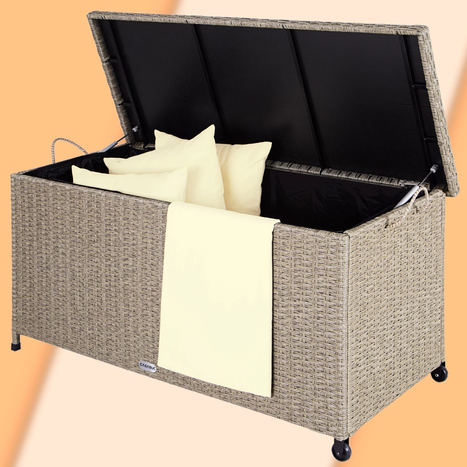 Die robuste Auflagenbox von CASARIA® aus pflegeleichtem Polyrattan bietet ausreichend Platz für Sitzauflagen, Kissen und andere Gartenaccessoires.