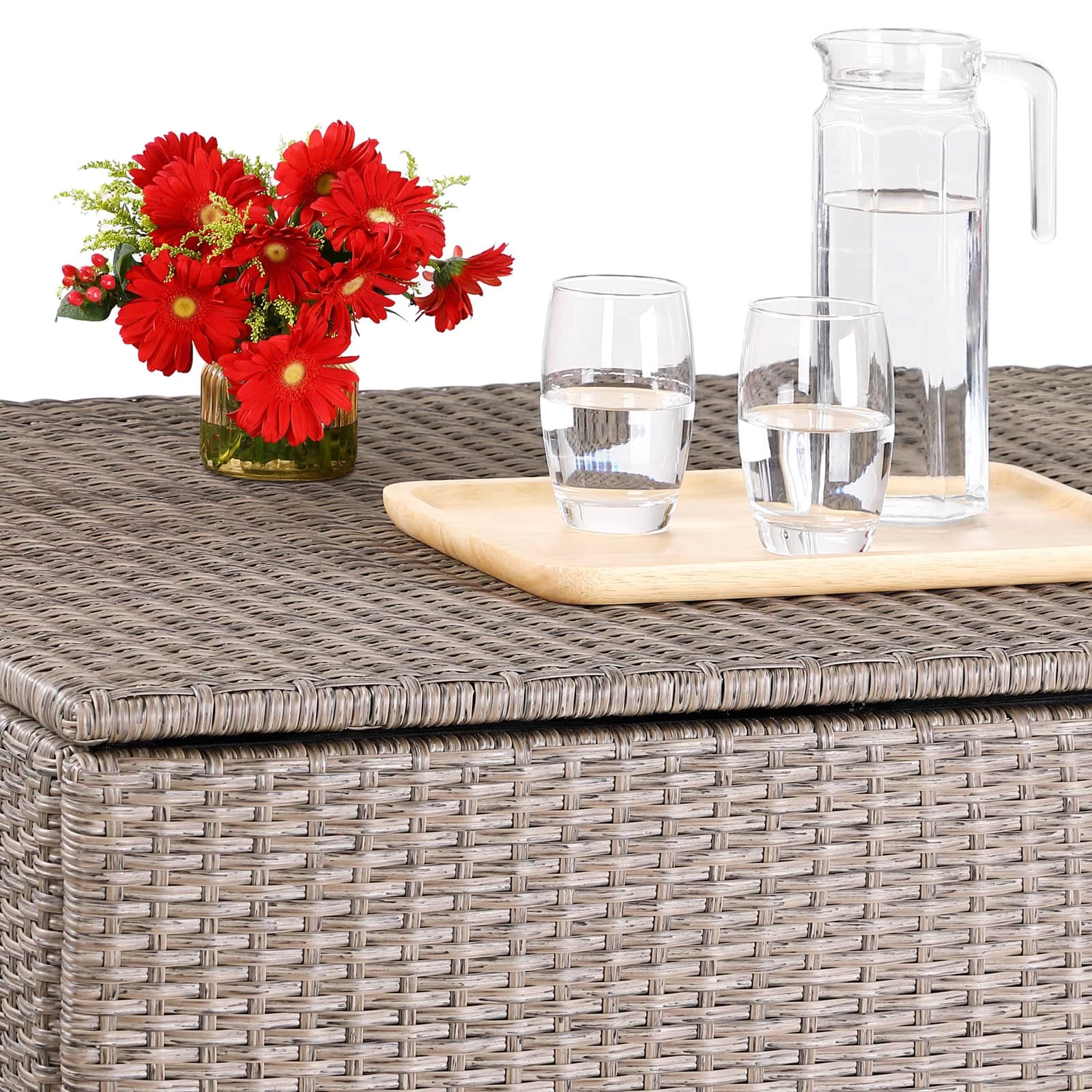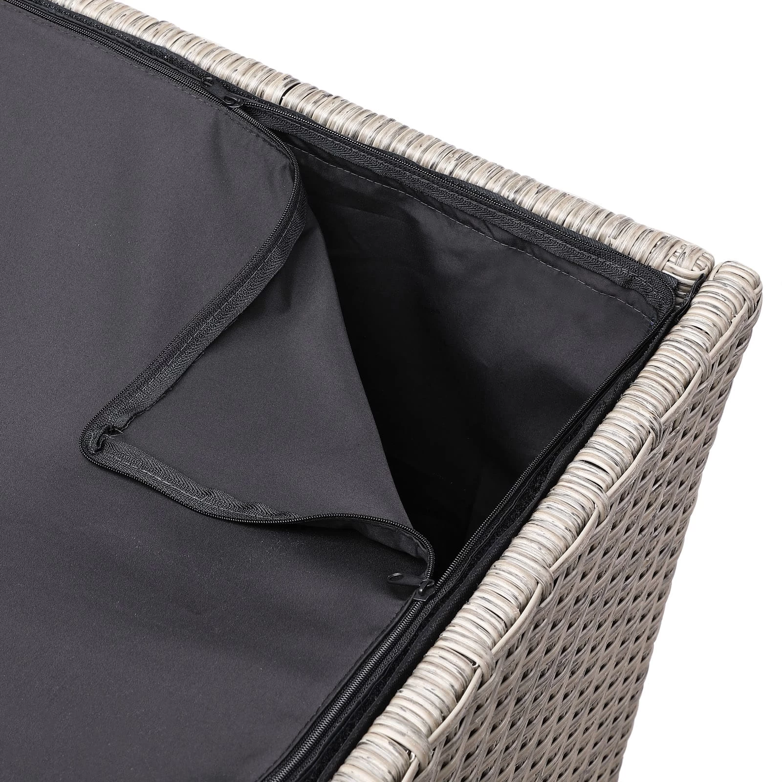 Die robuste Auflagenboxen bietet mit 318 L Fassungsvermögen viel Stauraum für Sitzauflagen, Kissen und andere Gartenaccessoires. Das wetterfeste Polyrattan und das galvanisierte Stahlgestell sind bestens für den Outdoor-Einsatz geeignet. Die Oberfläche der Gartenbox ist schmutzabweisend und einfach zu reinigen.