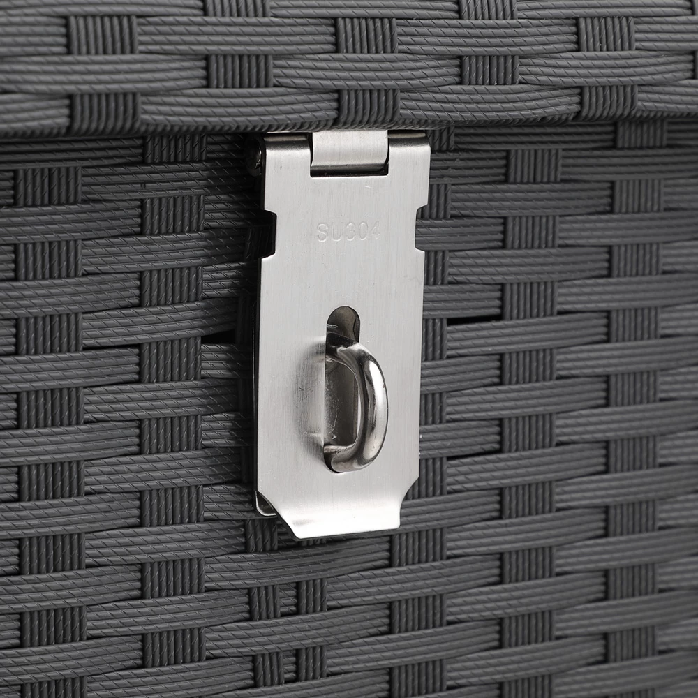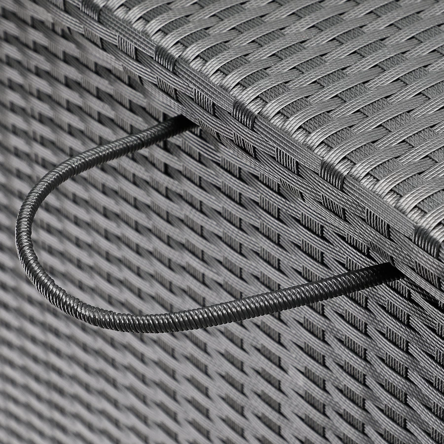 Die stabile Auflagenbox bietet mit einem Volumen von ca. 800 Litern ausreichend Platz für Gartenaccessoires aller Art. Aus Polyrattan Geflecht gefertigt ist die Box wetterfest, UV-lichtbeständig, schmutzabweisend und einfach zu reinigen.