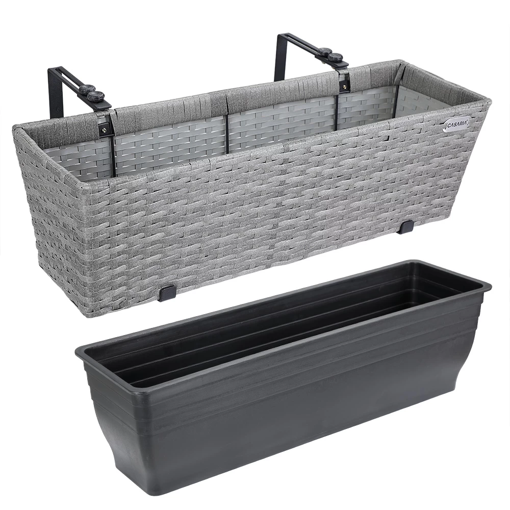 Der Blumenkasten aus wetter- und bruchfestem Polyrattan ist ideal für Bepflanzungen im Garten, auf dem Balkon, in der Wohnung oder im Wintergarten.