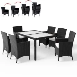 Das Gartenmöbel-Set besteht aus 1 Gartentisch und 6 stapelbaren Stühlen mit 7 cm dicken, abnehmbaren Sitzauflagen für besten Sitzkomfort.