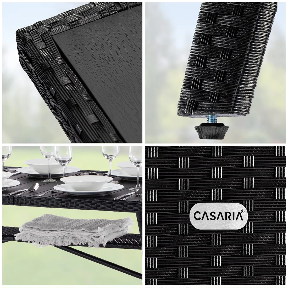 - Material Tischplatte: WPC (Holz/Kunststoffkombination)