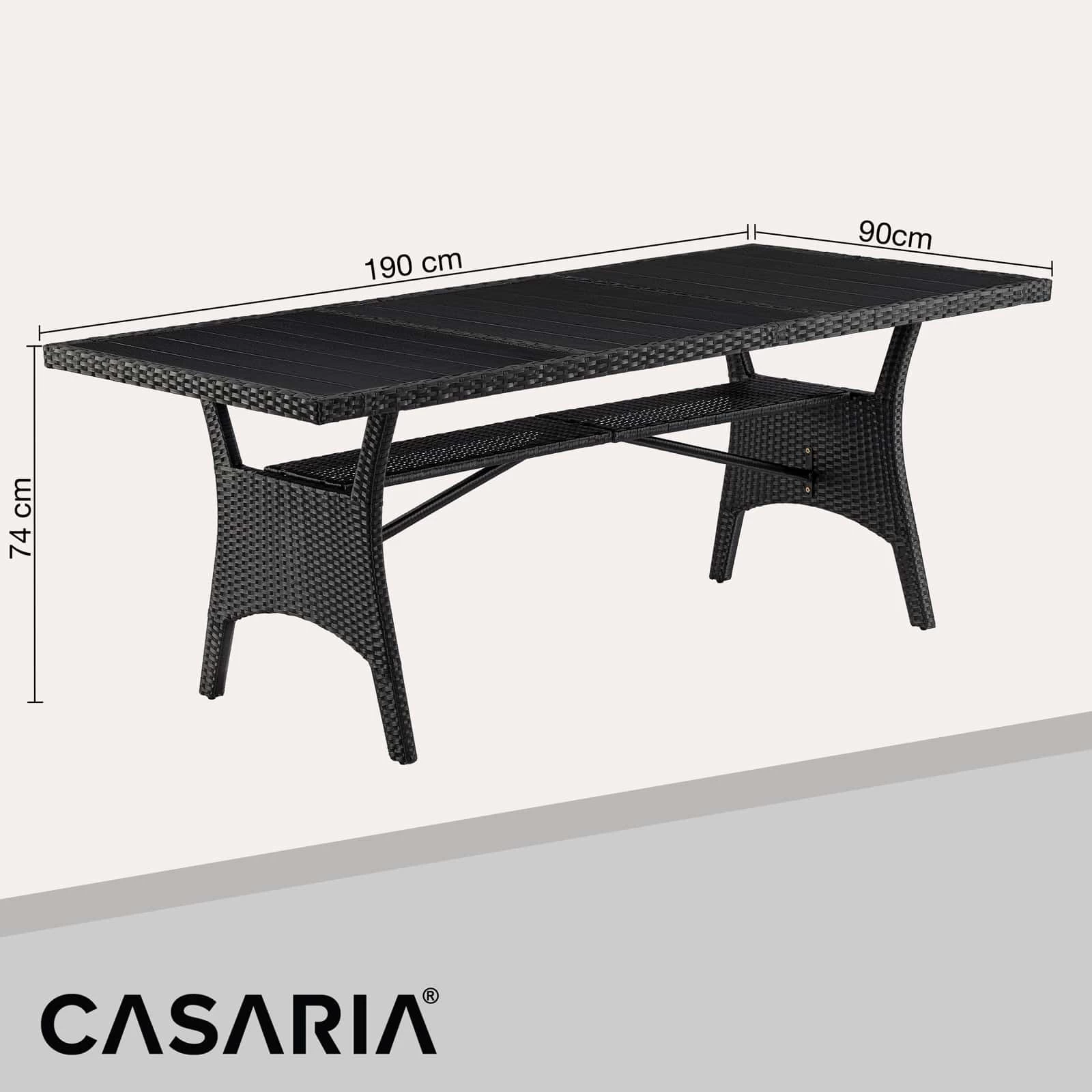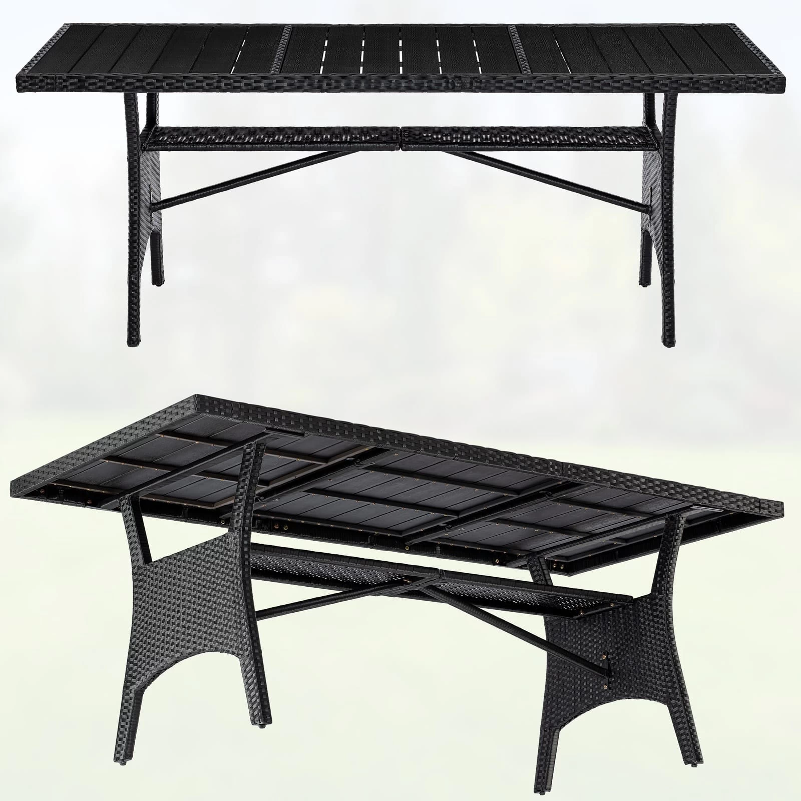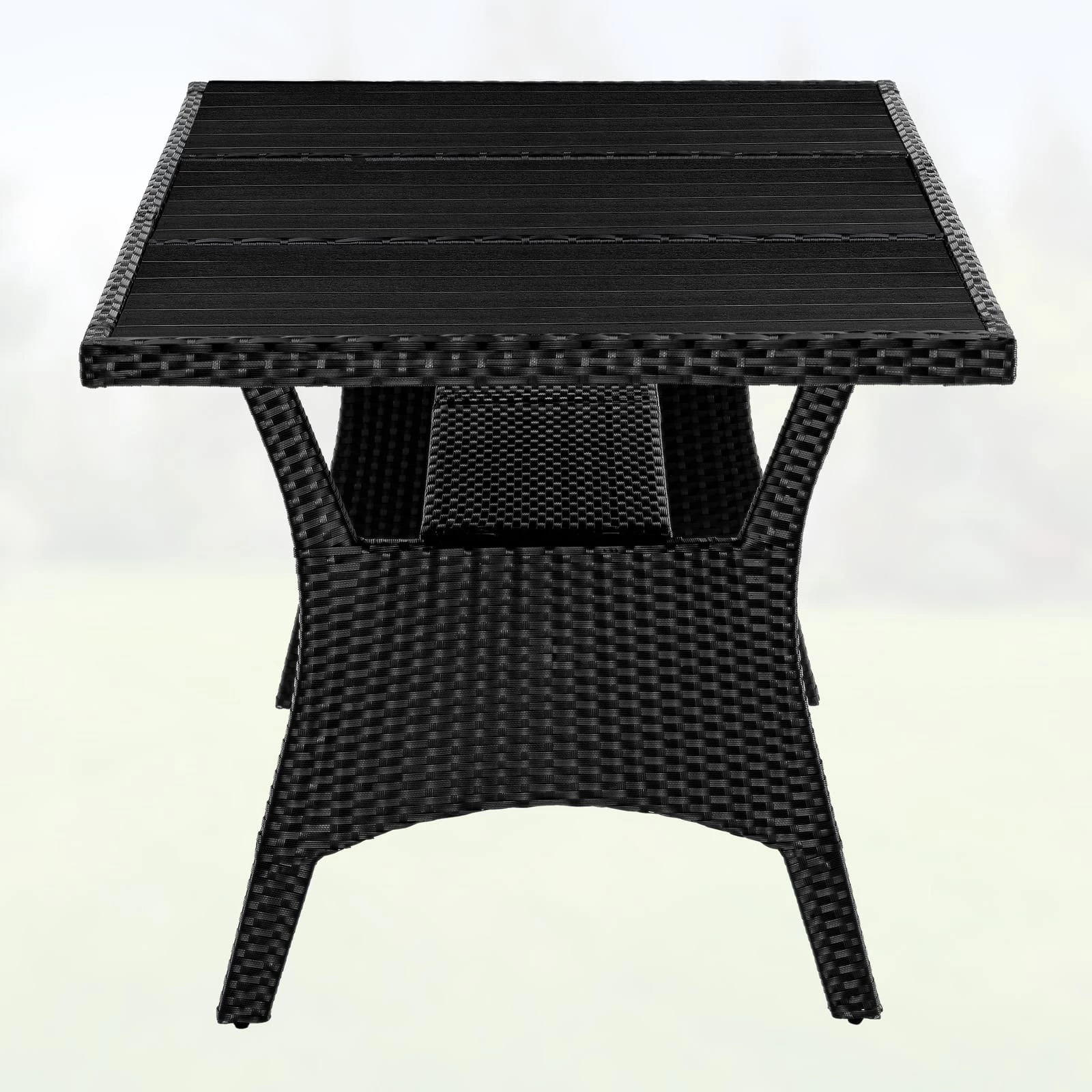 Dieser exklusive Polyrattan Gartentisch ist mit einer sehr robusten und widerstandsfähigen Tischplatte aus WPC in Holzoptik ausgestattet. Dadurch ist der Tisch vor Wind und Wetter gut geschützt und ideal für den Garten, die Terrasse oder im Haus geeignet.