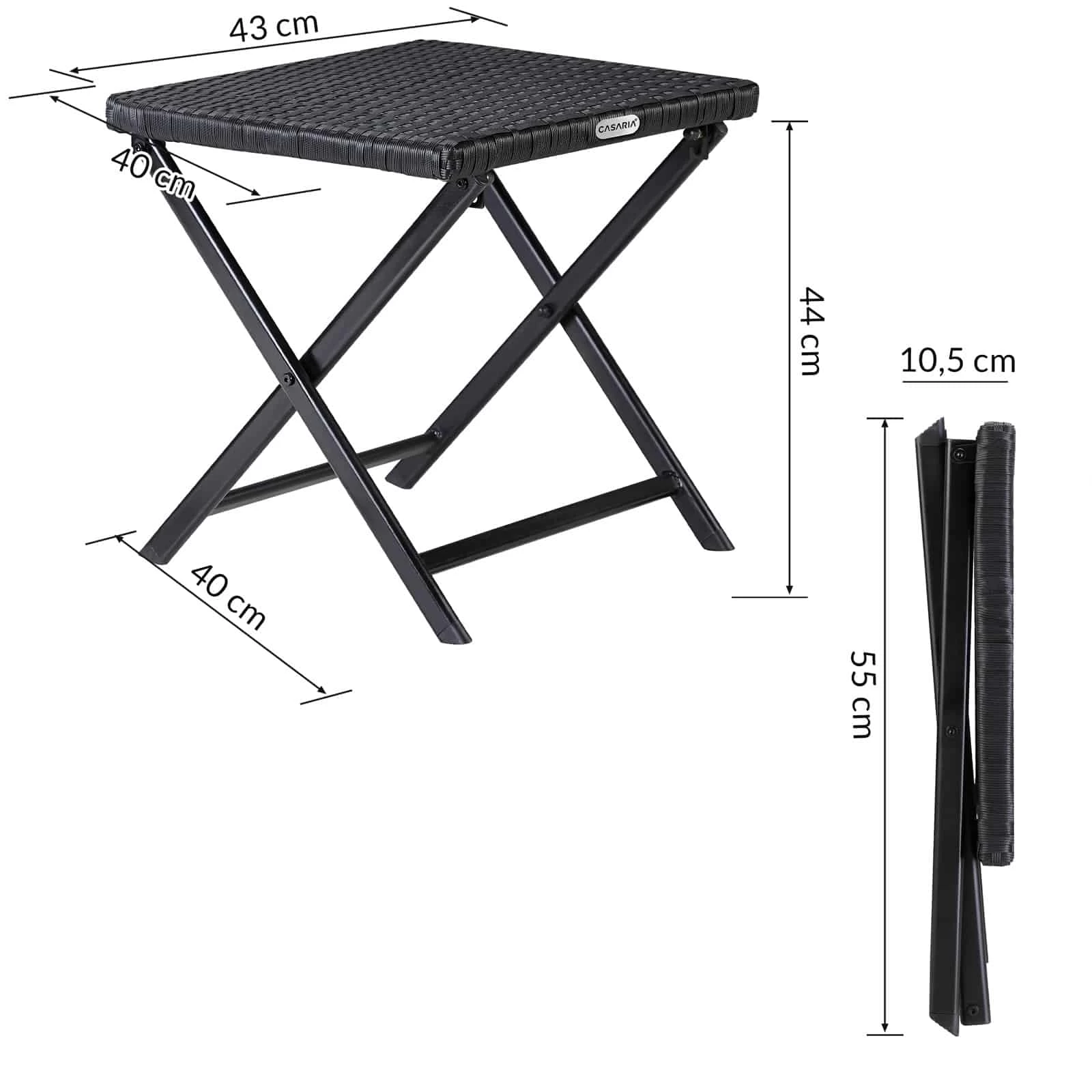 - Maße zusammengeklappt (LxBxH): 55 x 44 x 10,5 cm