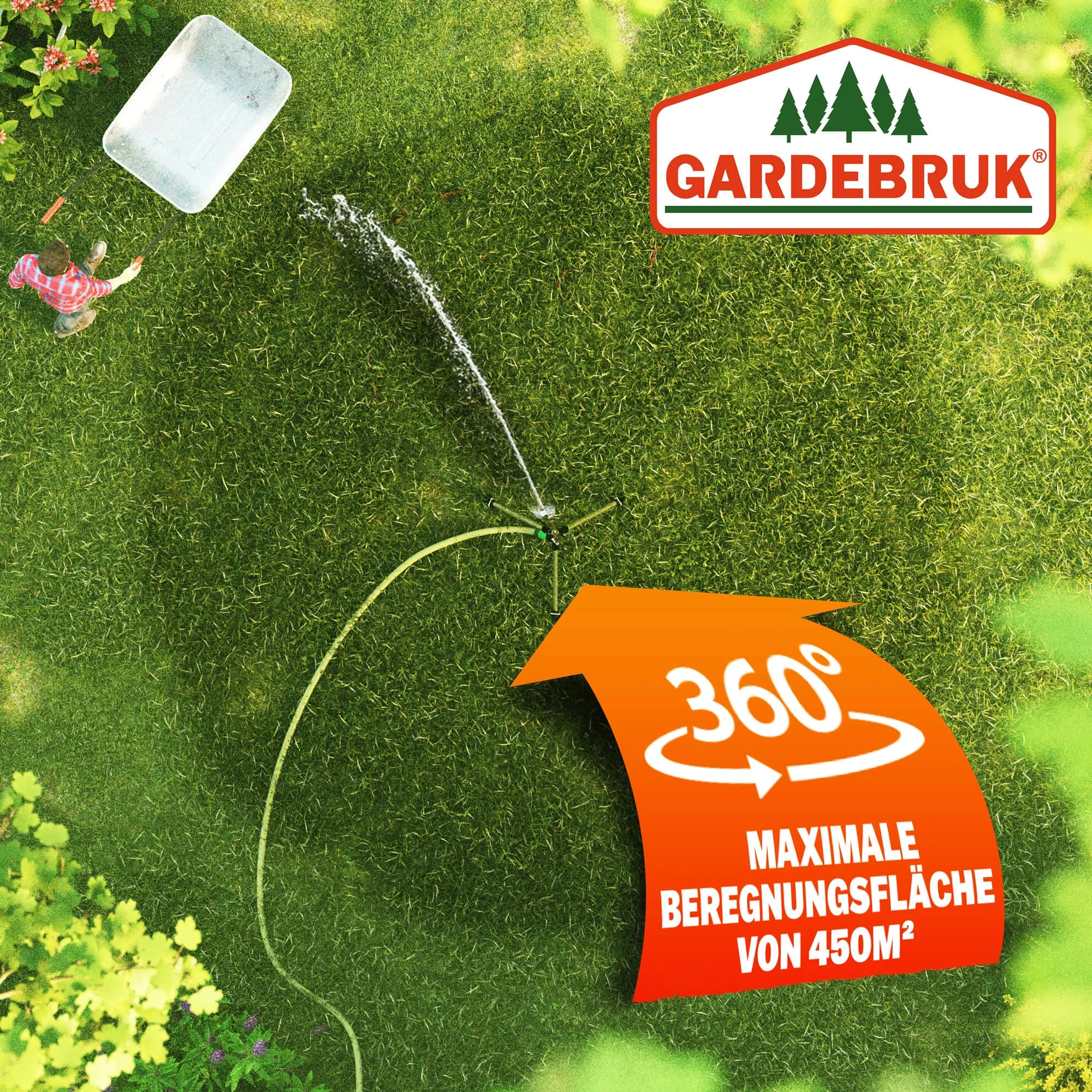 Zusätzlich erhalten Sie einen 360° Sprühaufsatz. Der Rasensprenger ist für alle handelsüblichen Gartenschläuche geeignet.
