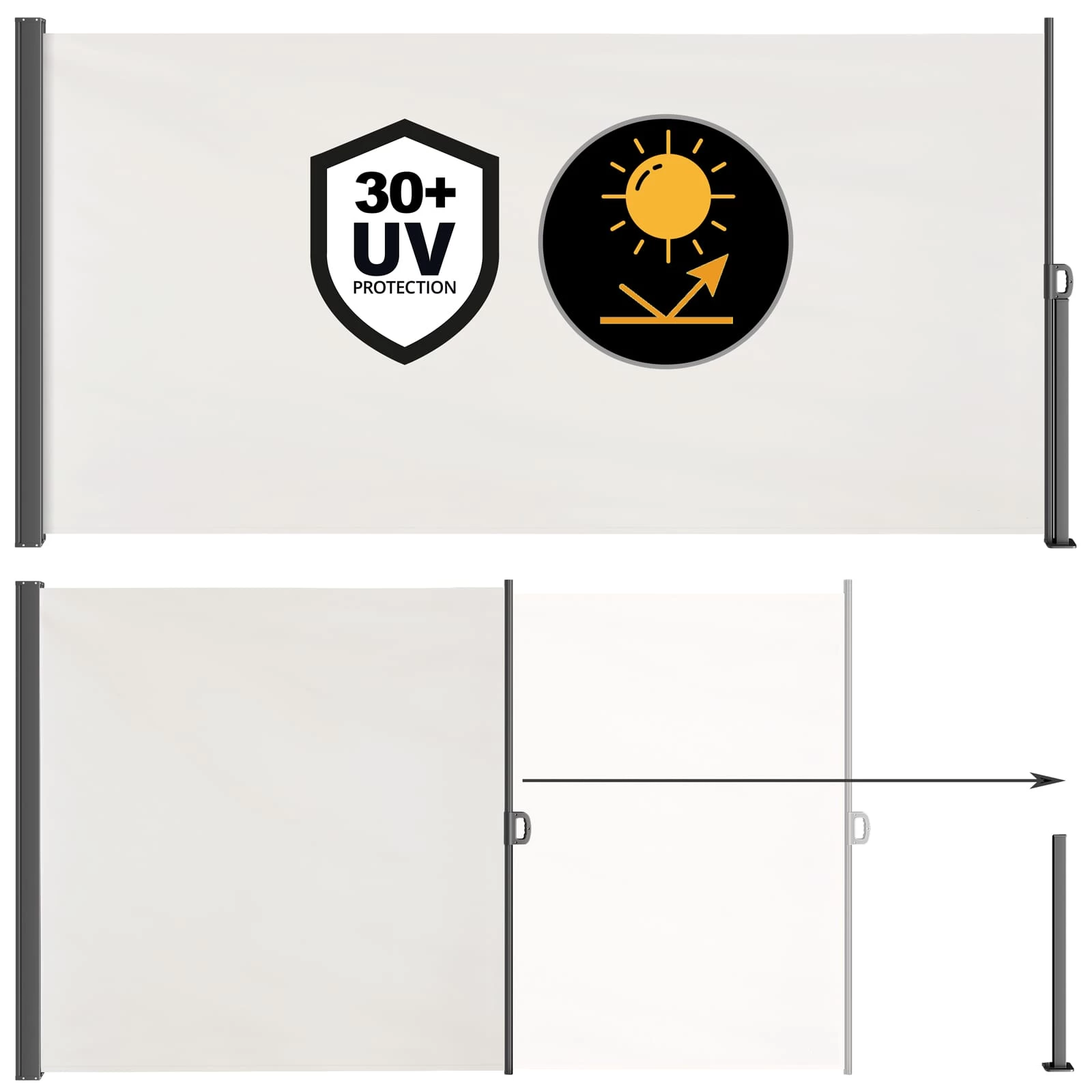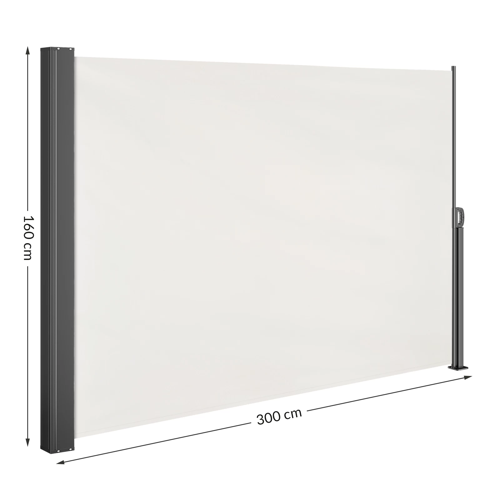 Die hochwertige Seitenmarkise Nosara von Casaria® schützt optimal vor neugierigen Blicken. Die robuste Markisenkassette besteht aus pulverbeschichtetem Stahl und beinhaltet einen blickdichten Markisenstoff aus widerstandsfähigem Polyester (180 g/m²). Durch die PU-Beschichtung ist der Stoff wasserabweisend, wetterbeständig und leicht zu reinigen. Windböen oder Sonneneinstrahlung werden ebenso zuverlässig abgehalten.