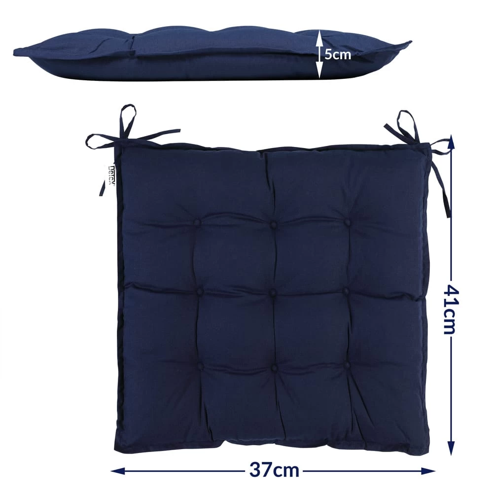 Mit den optimalen Abmessungen passen die Kissen auf alle gängigen Stühle. Dank seitlich angebrachten Haltebänder lässt sich das lästige Verrutschen der Polster leicht verhindern.