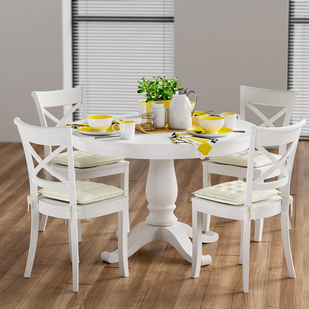 Mit den optimalen Abmessungen passen die Kissen auf alle gängigen Stühle. Dank seitlich angebrachten Haltebänder lässt sich das lästige Verrutschen der Polster leicht verhindern.