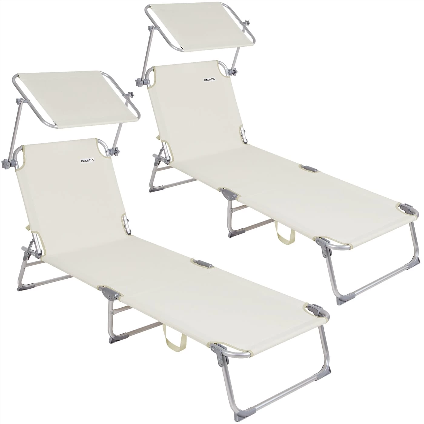 Die Lehne der bequemen Sonneliege von Casaria lässt sich 4-fach verstellen. Durch die kompakte Bauweise lässt sich die Klapp-Liege platzsparend transportieren. Die praktischen Transportschlaufen sorgt außerdem für ein einfaches Tragen.