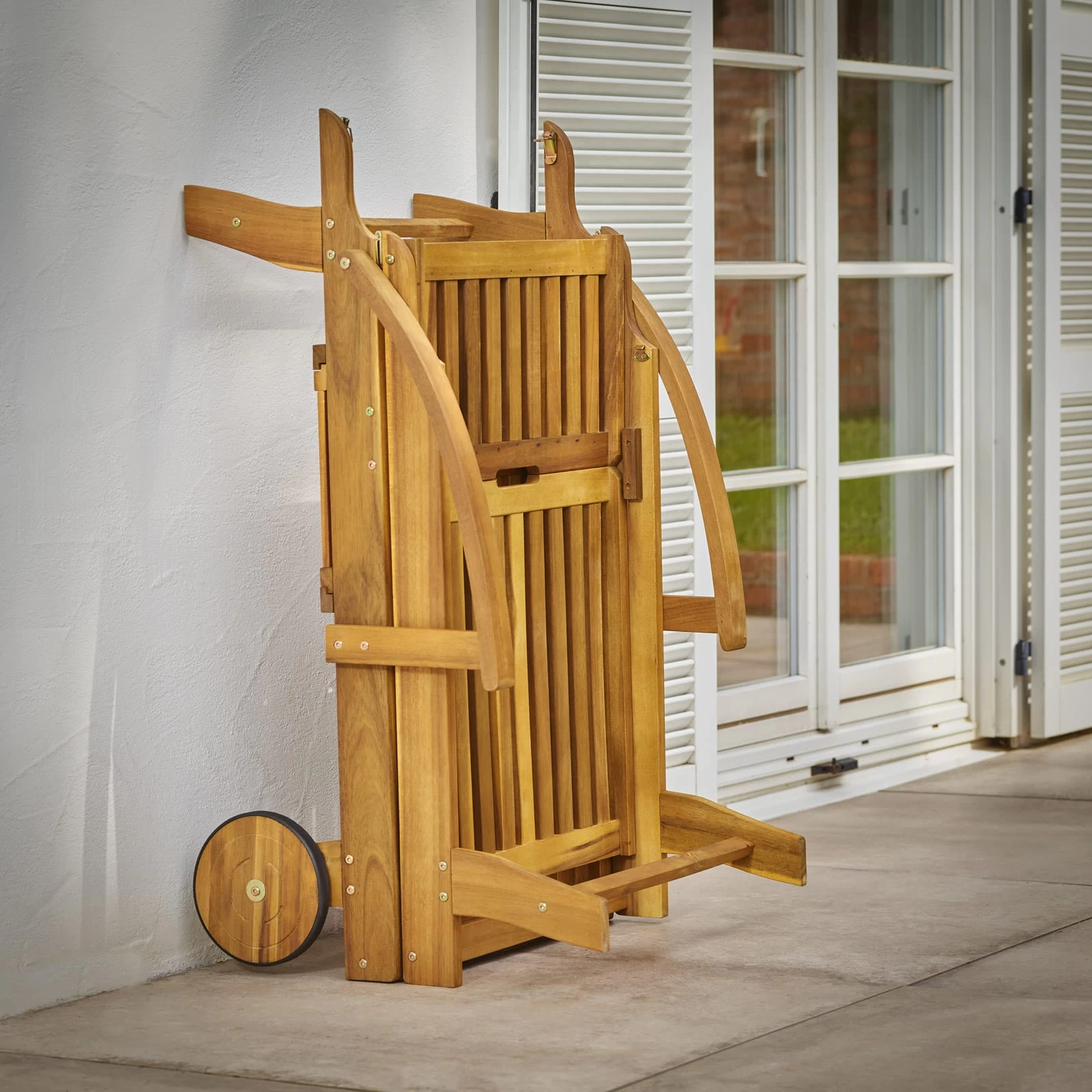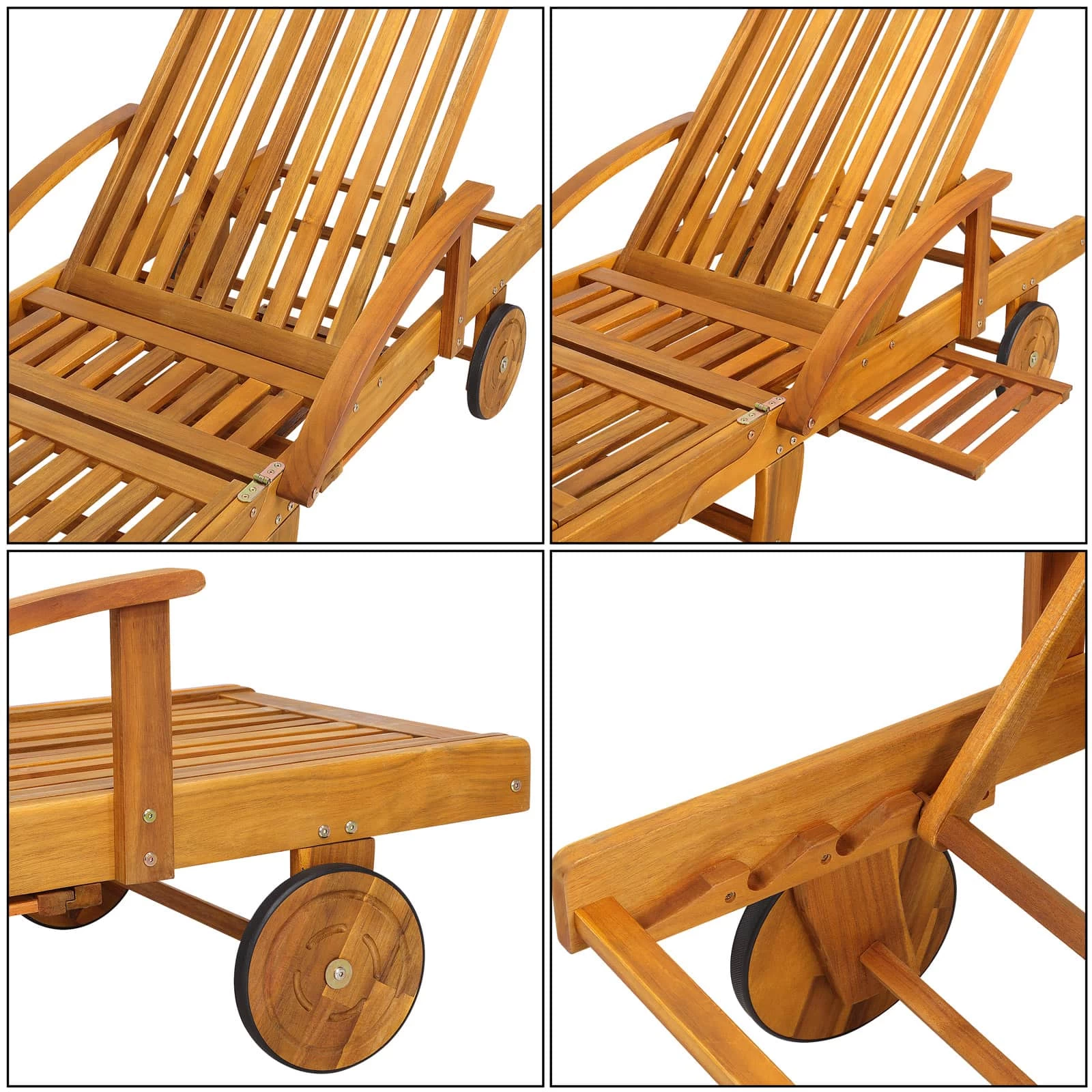 Die individuell anpassbare und klappbare Sonnenliege Tami Sun der Marke Casaria ist aus robustem und witterungsbeständigem Akazienholz gefertigt.
